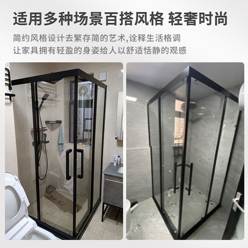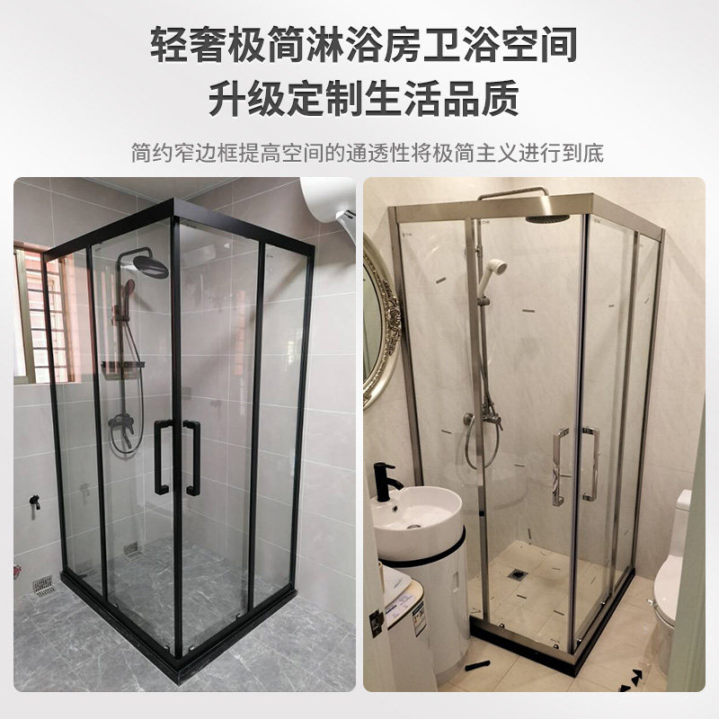 方形转角直角不锈钢屏风淋浴房卫生间干湿分离隔断玻璃推拉浴室门