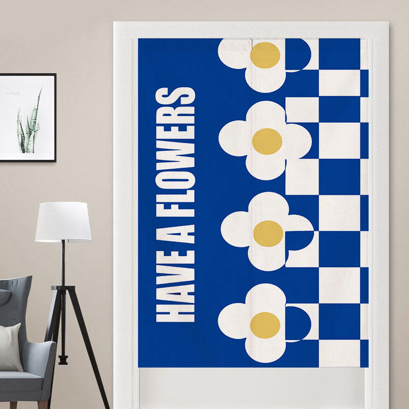 克莱因蓝门帘简约厨房卧室装饰半帘卫生间隔断帘遮挡防尘帘免打孔