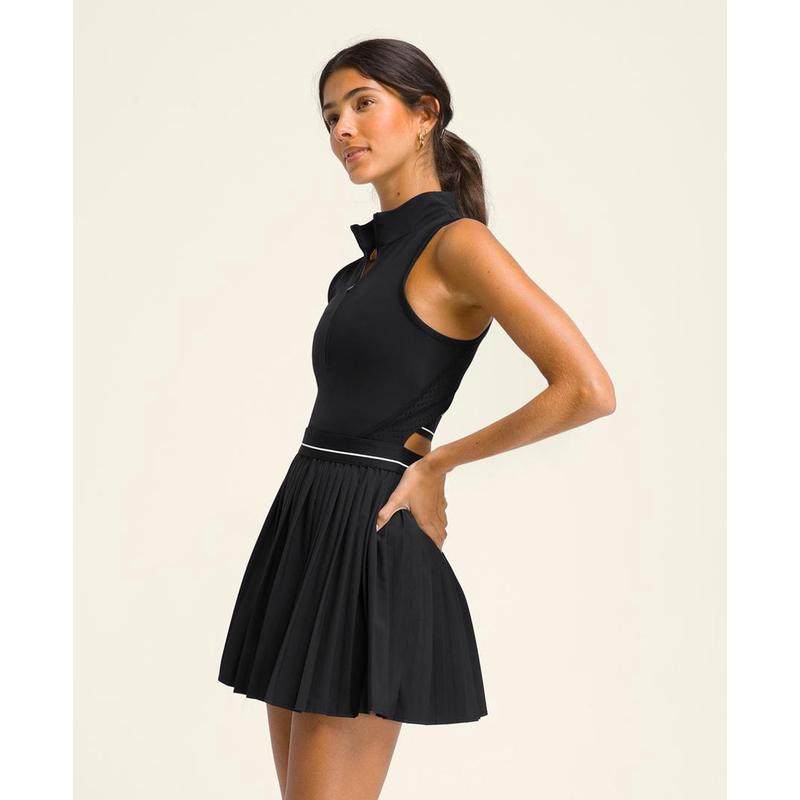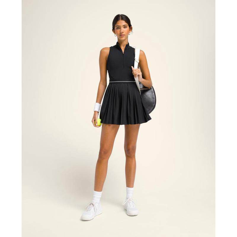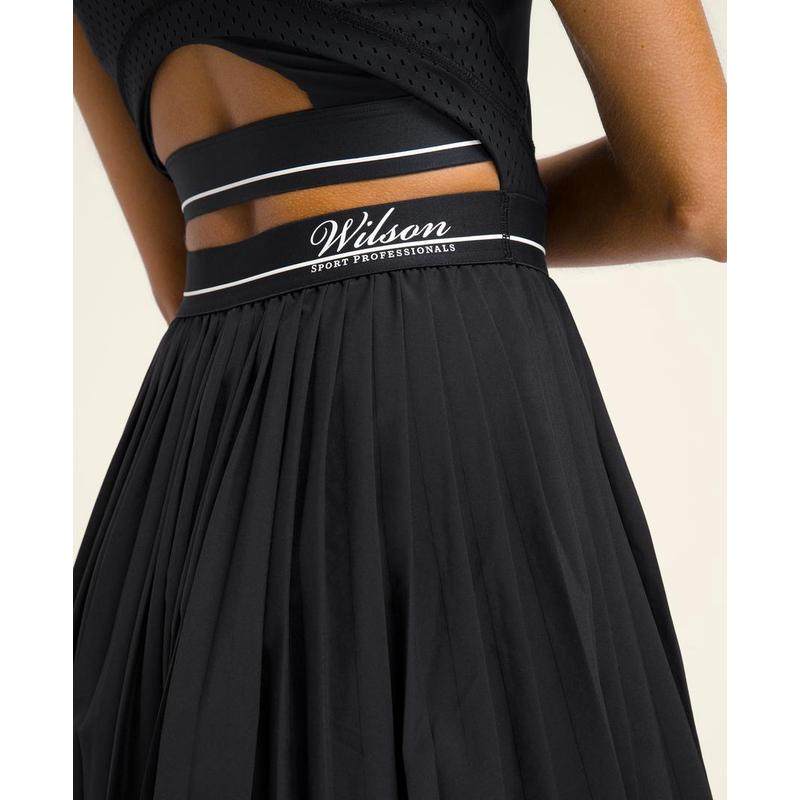 代购Wilson女士网球裙速干透气排汗轻盈黑色无袖高领百褶裙摆