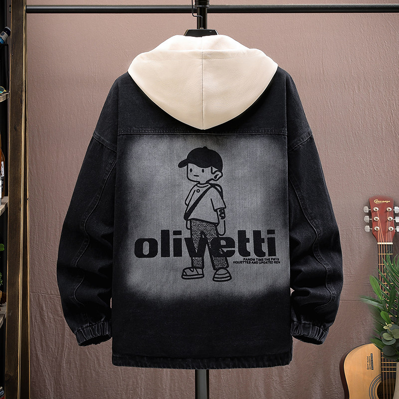 青少年牛仔外套春秋季新款男生初高中学生夹克男装潮男士连帽上衣