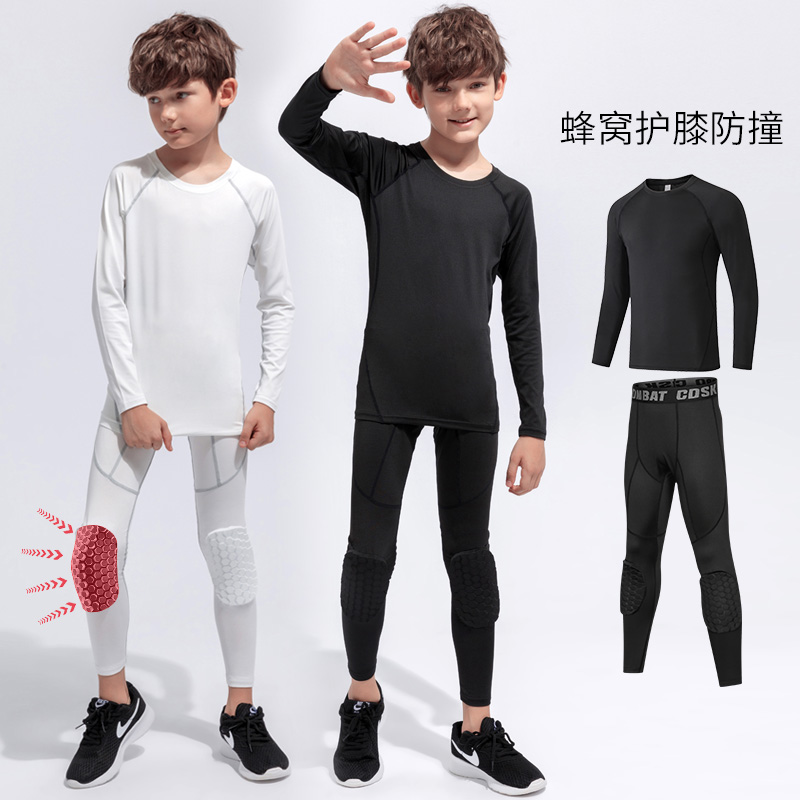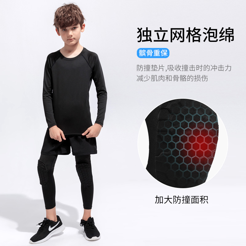 儿童紧身速干衣训练服秋冬加绒篮足球轮滑打底防撞护膝裤运动套装