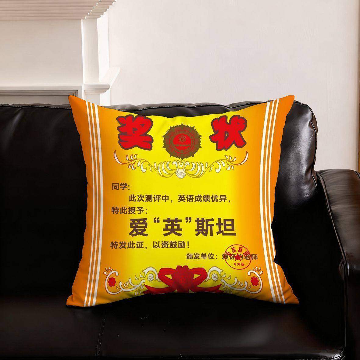 奖状抱枕定制创意个性期末小奖品搞笑毛绒靠垫实用寒假礼物送学生
