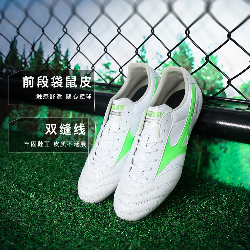 小李子美津浓莫雷拉2pro短钉AG碎钉TF袋鼠皮宽脚足球鞋男款青少年