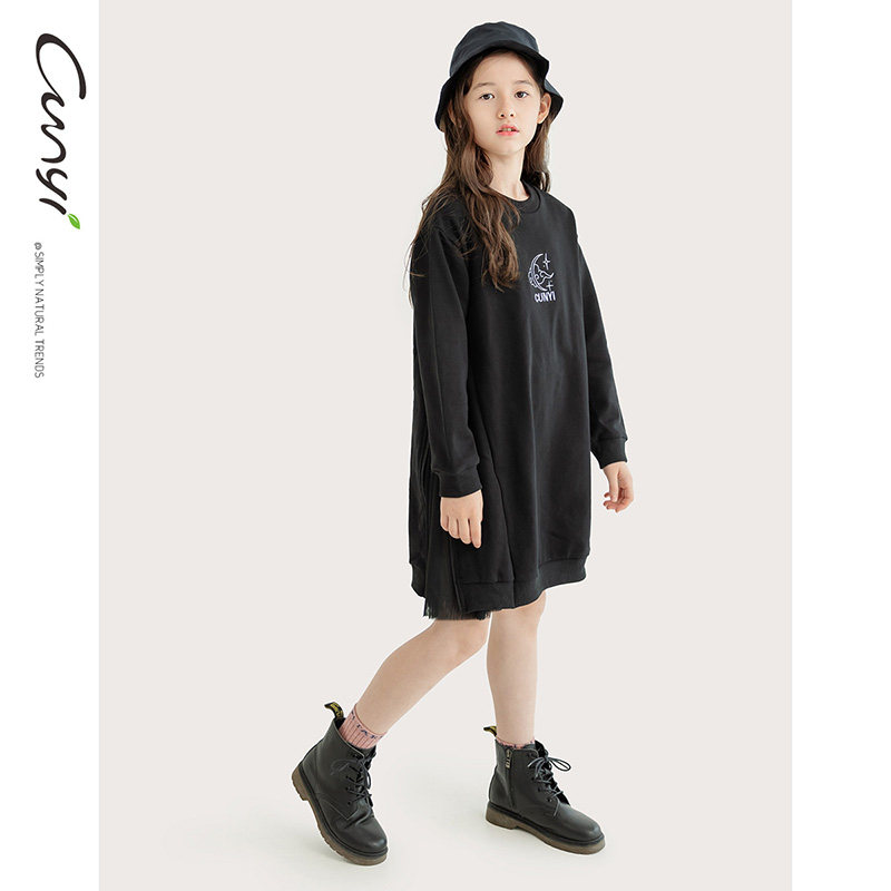 【奥莱清仓】纯一良品女童连衣裙秋冬中大童流飒爽连身裙酷女孩