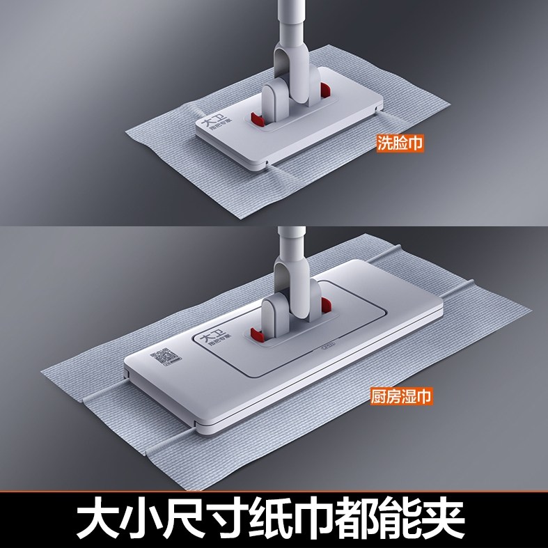 大卫平板拖把懒人夹布阔面板拖把家用洗脸巾拖布干湿两用2026新款