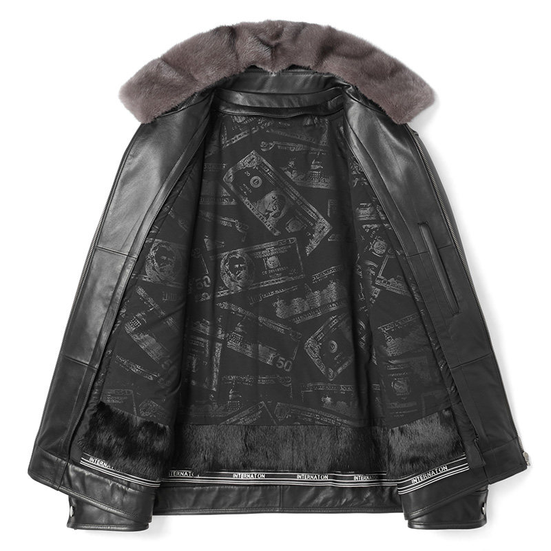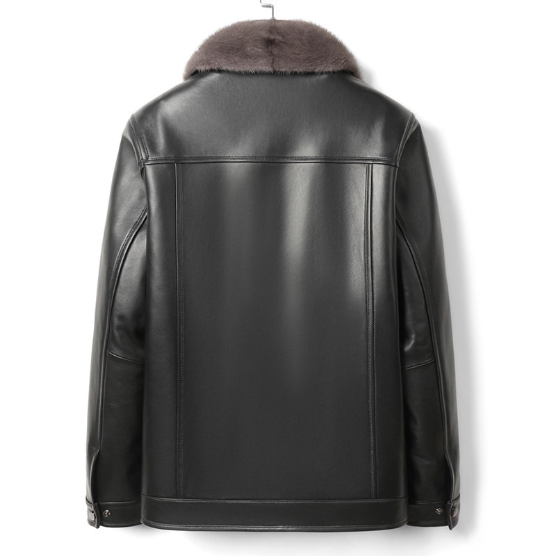 海宁真皮羽绒服男士绵羊皮羽绒皮衣中老年中长款水貂毛领大衣外套