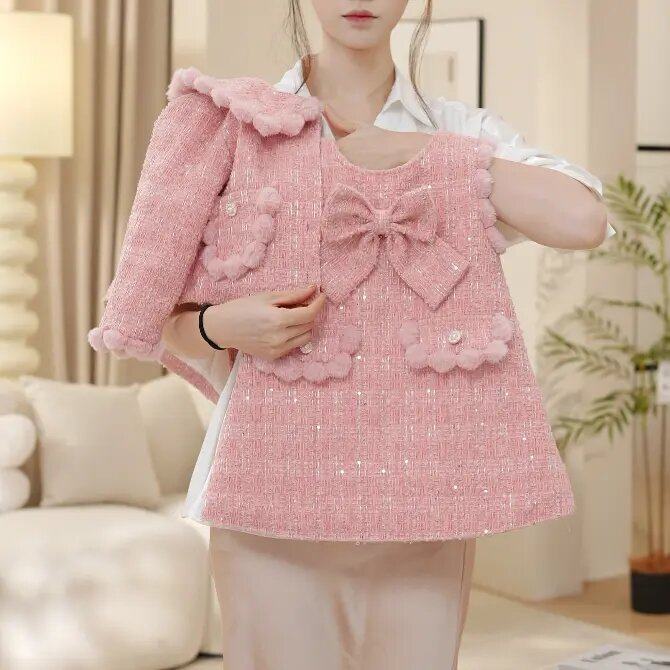 女童连衣裙套装冬季高级感2025新款儿童小香风外套背心裙轻奢洋气