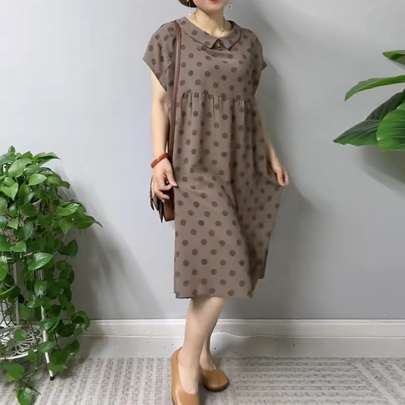 新款娃娃领连衣裙女2025夏季小个子洋气遮肚子显瘦中长款过膝裙子