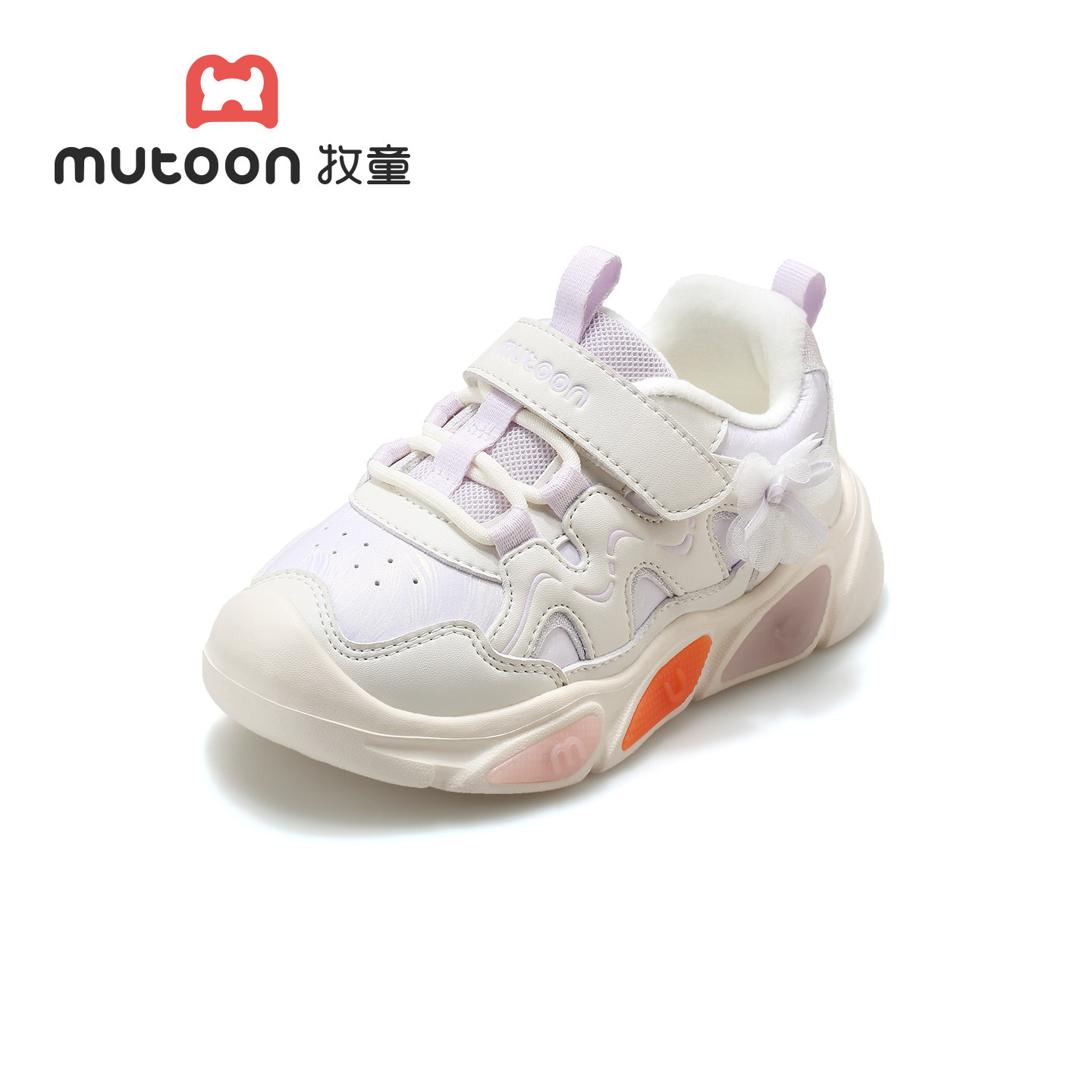 牧童女童鞋甜美儿童运动鞋2025冬季新款小花轻便软底皮面加绒棉鞋
