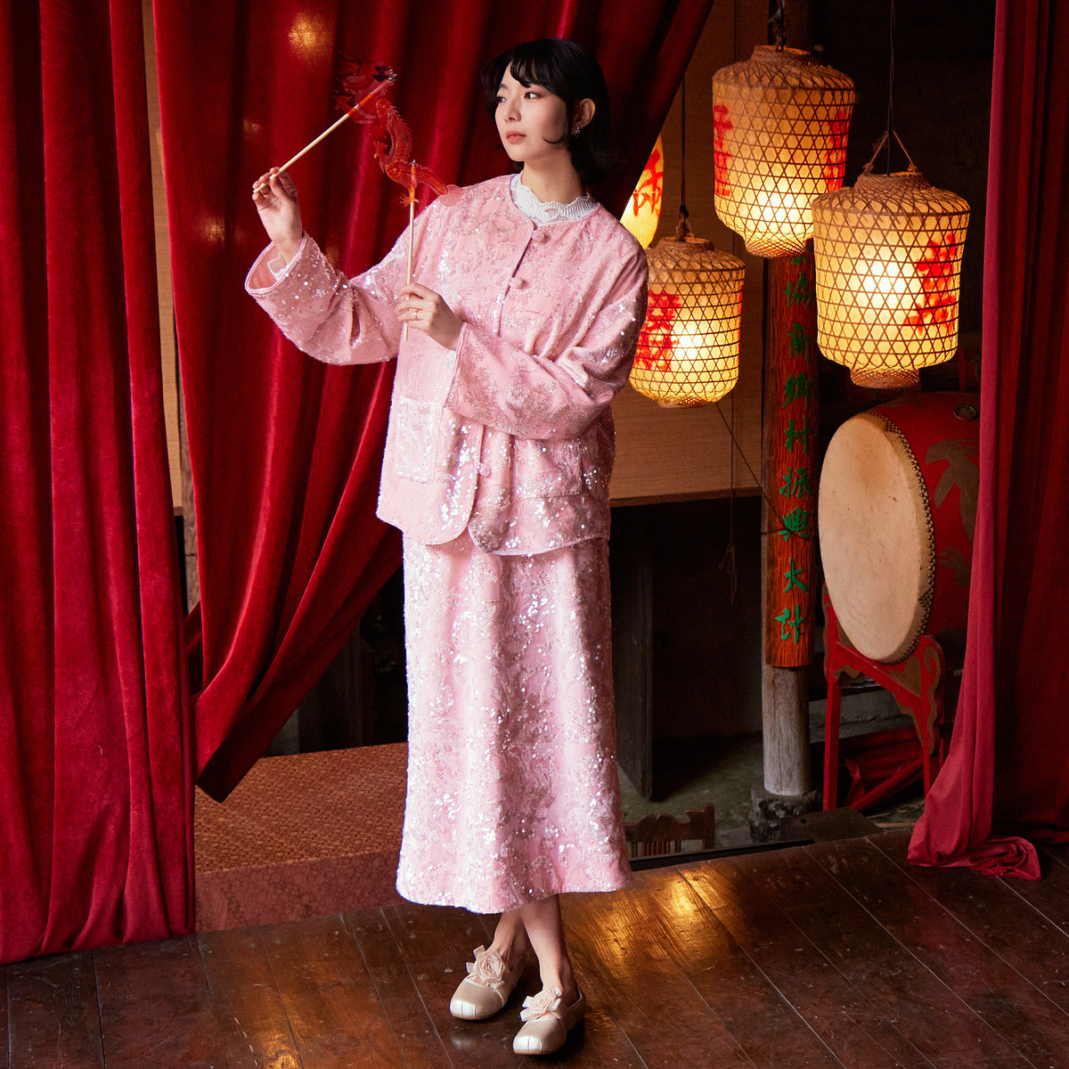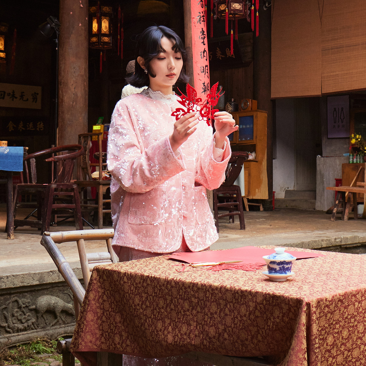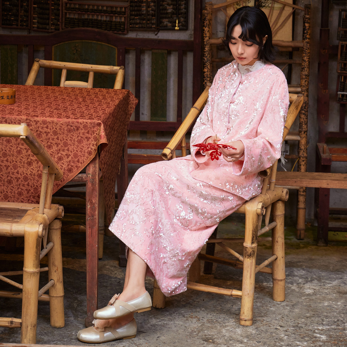 西町村屋新中式外套女装2026春季新款国风丝绒亮片上衣XEBA10315