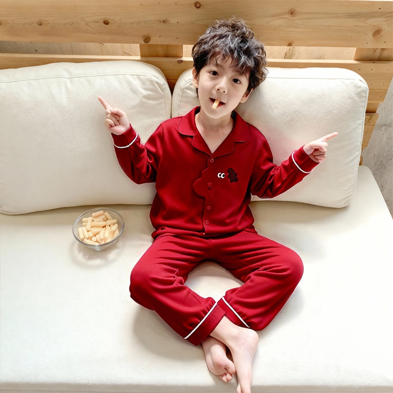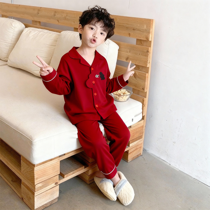 红色小狗纯棉睡衣男童长袖春秋新款可爱本命年家居服套装可外穿