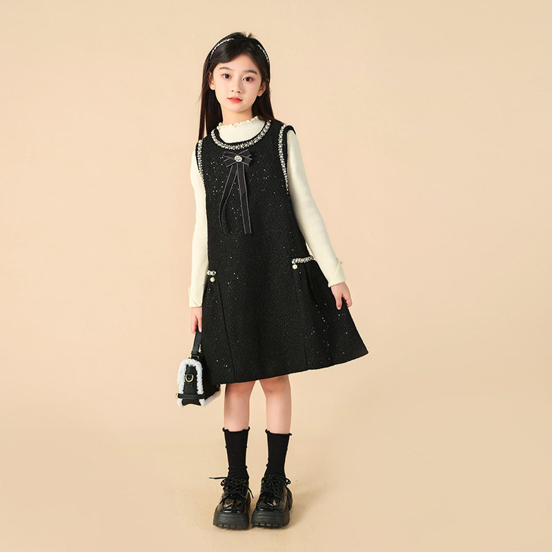 女童小香风套装裙2025秋冬季新款儿童洋气背心裙中大童气质连衣裙