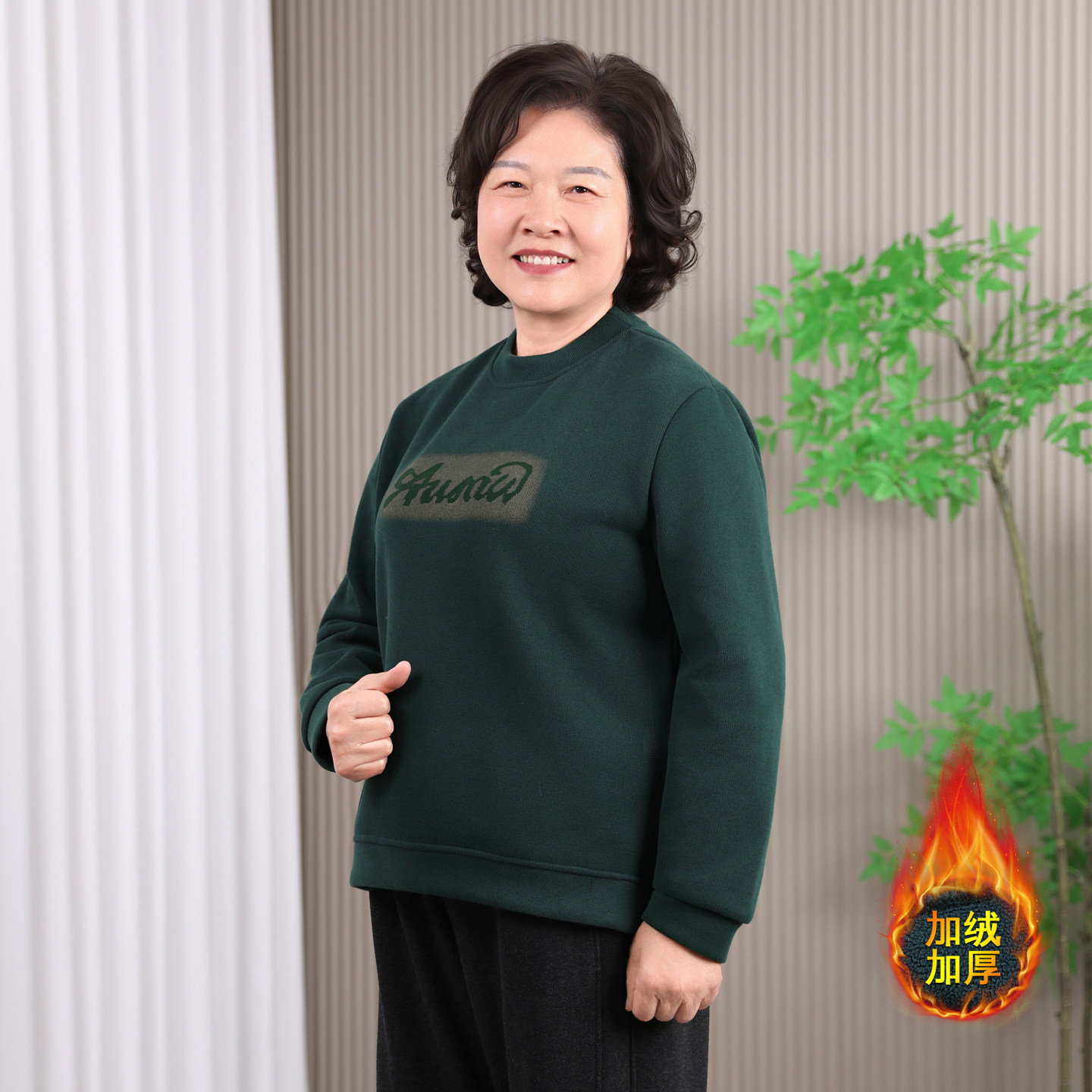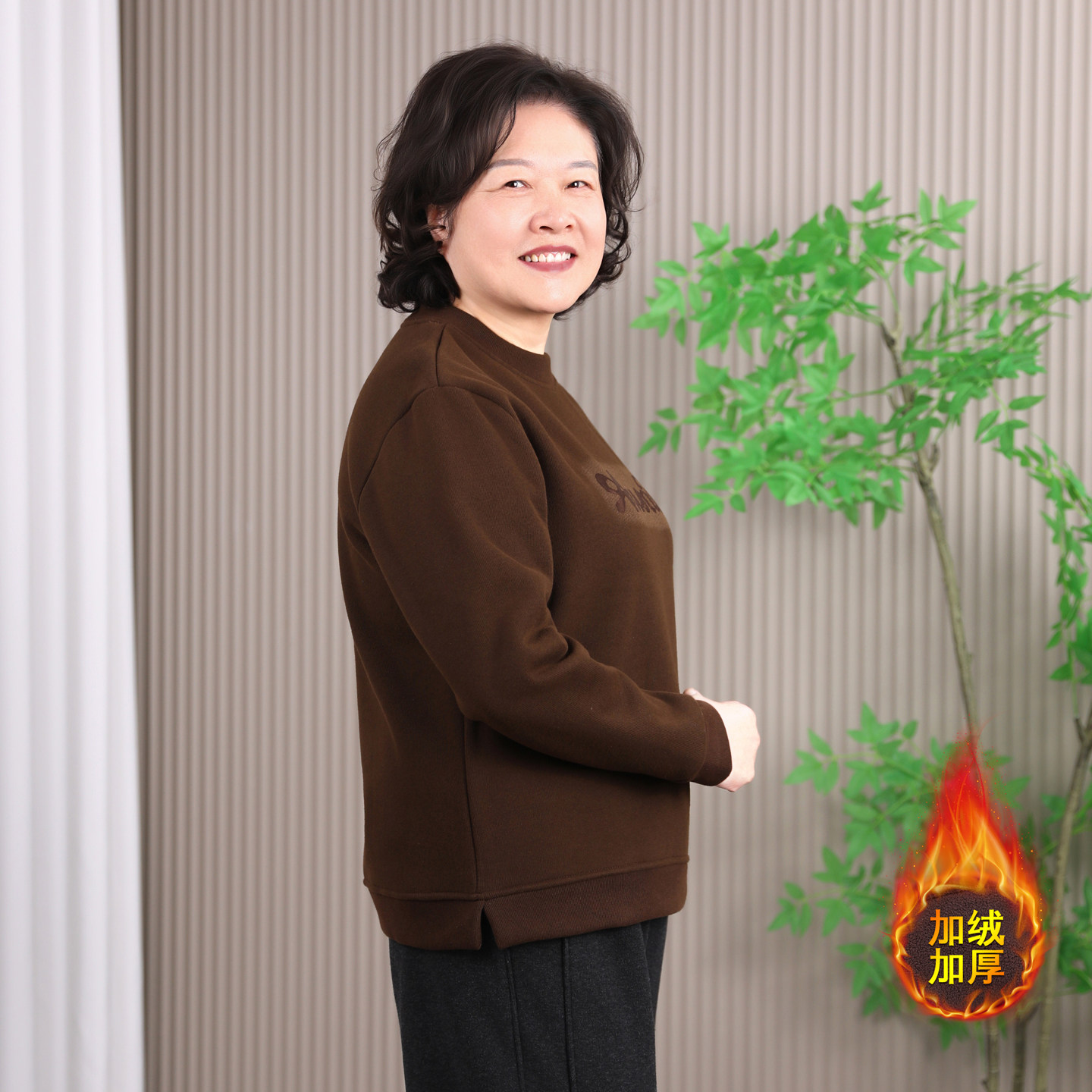 妈妈冬装加绒加厚卫衣2025新款中老年人女装洋气保暖内搭上衣绒衫