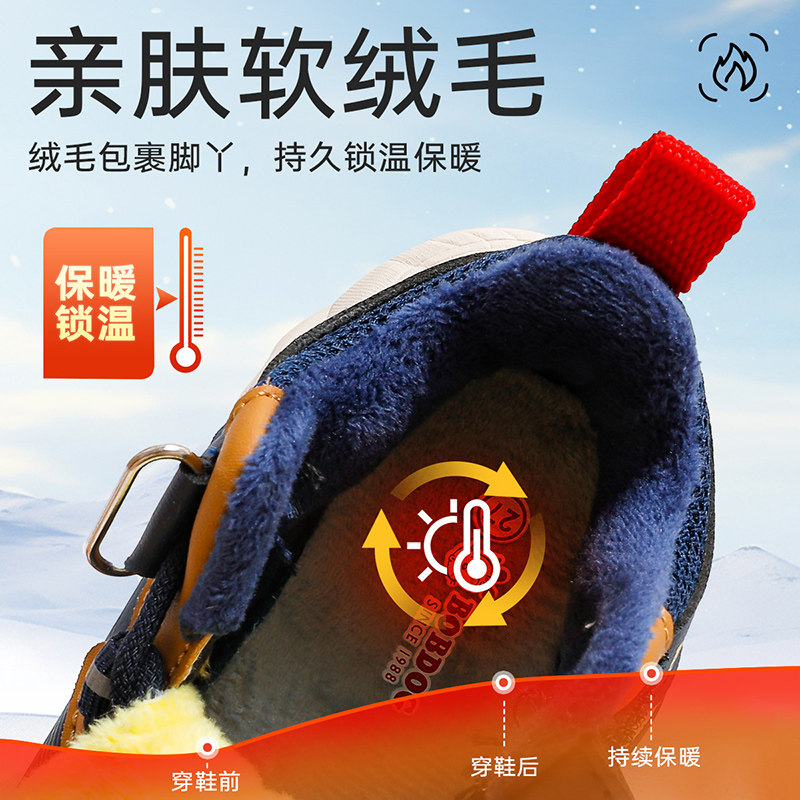 巴布豆儿童魔术贴加绒鞋子男童女童高颜值运动老爹鞋女鞋男鞋冬季