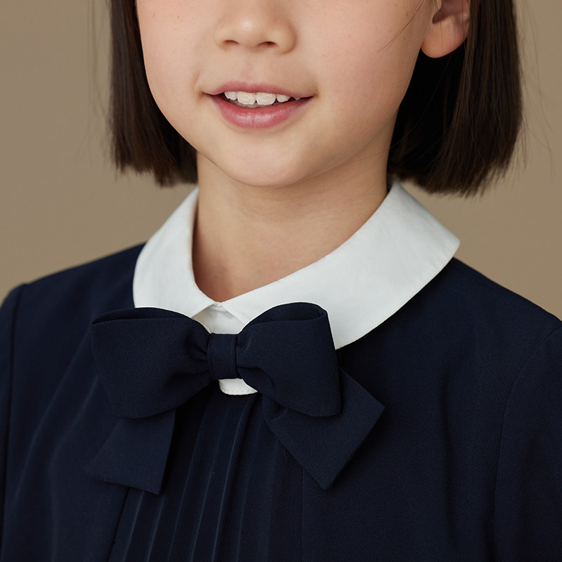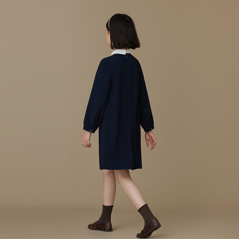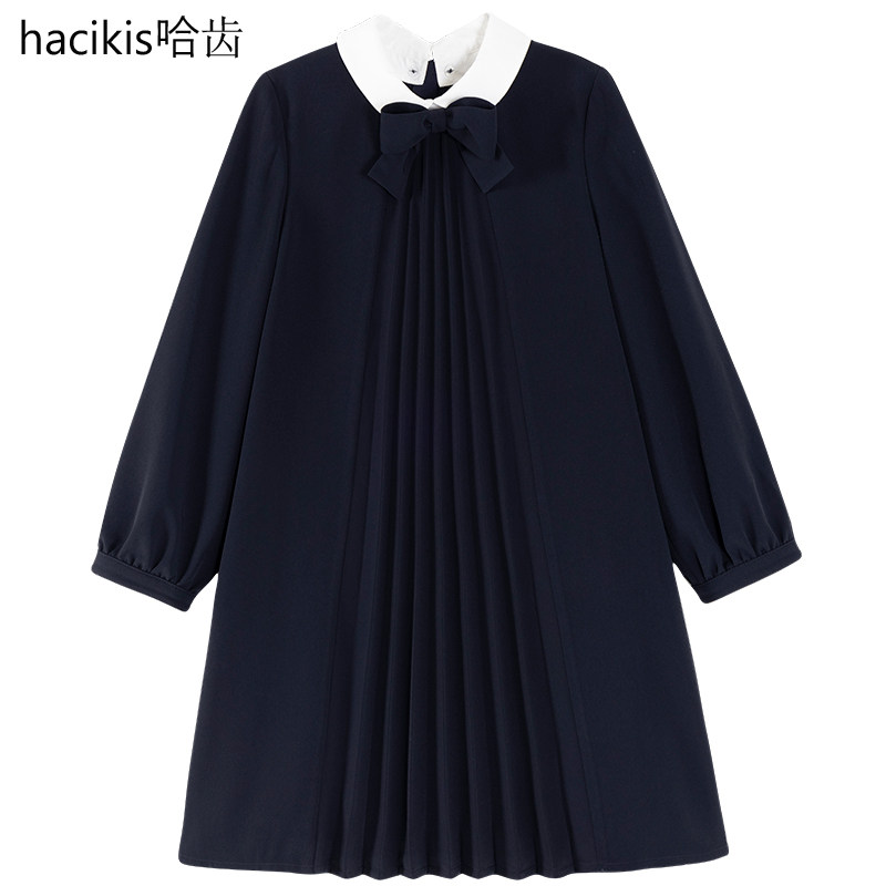 哈齿童装儿童长袖连衣裙藏青学院风女童甜美蝴蝶结公主裙春秋新款