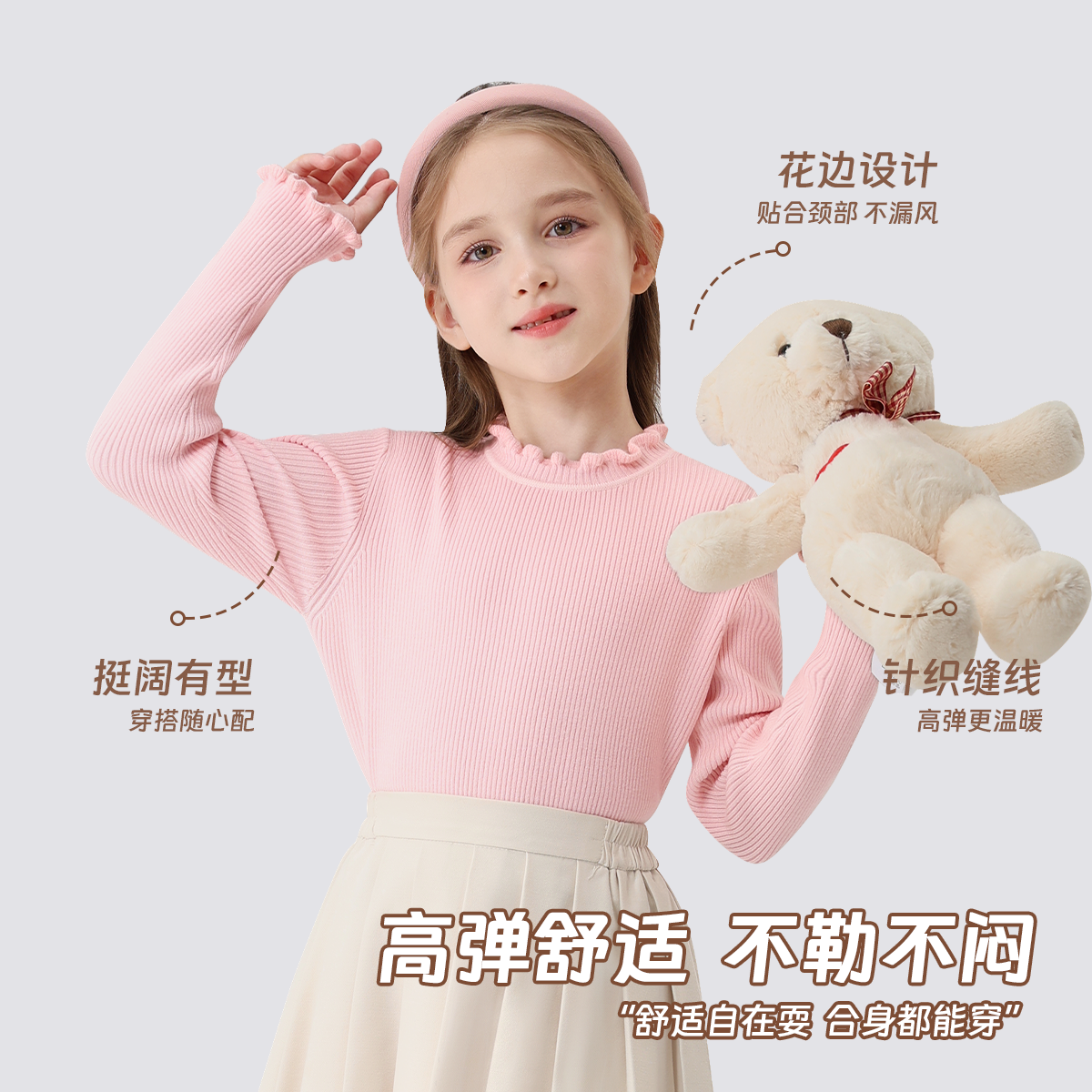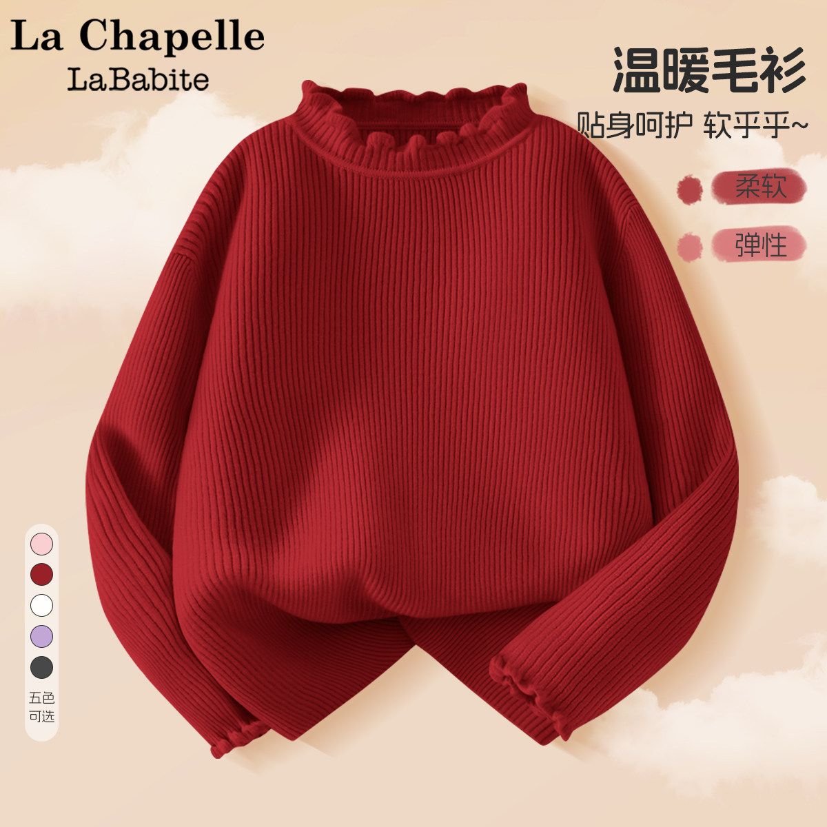 拉夏贝尔女童2026新款毛衣冬季红色过年针织衫打底衫儿童冬装衣服