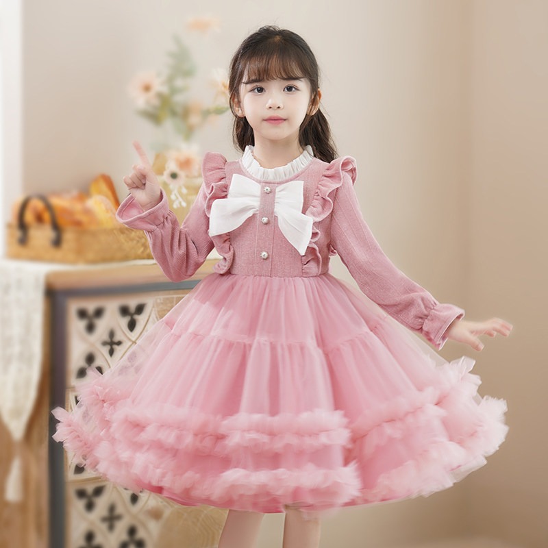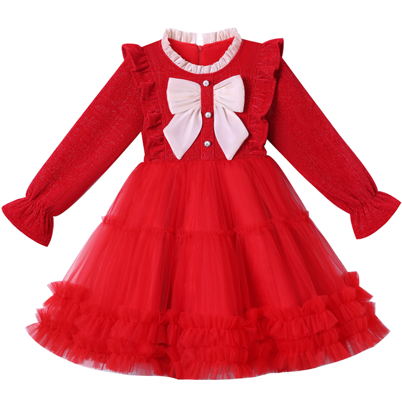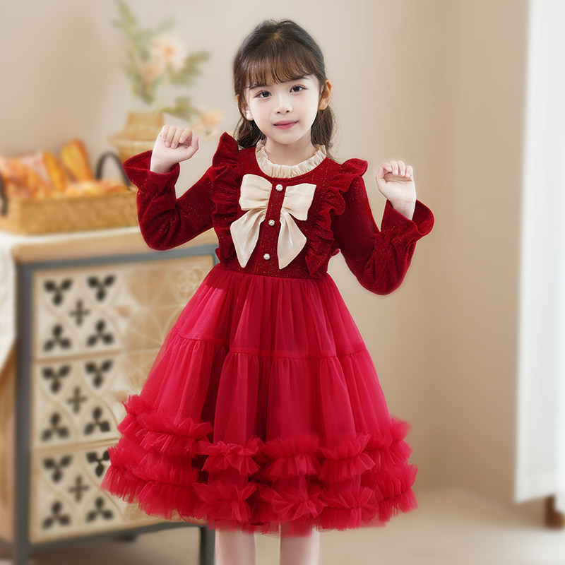 女童连衣裙冬季2026新款秋冬裙子红色女孩洋气儿童冬装蓬蓬公主裙