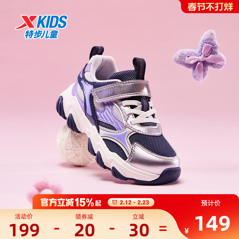 星辰|特步童鞋冬季新款幼小童女童魔术贴休闲鞋子儿童软底运动鞋
