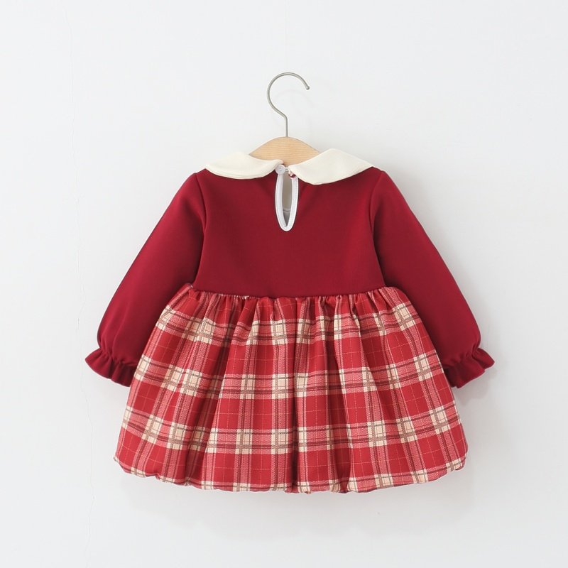 女童长袖连衣裙春秋季儿童女宝宝娃娃领格纹花苞公主裙子0一1-3岁