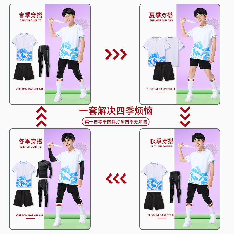 儿童足球服四件套男童女孩运动训练服装羽毛球六一表演足球衣定制