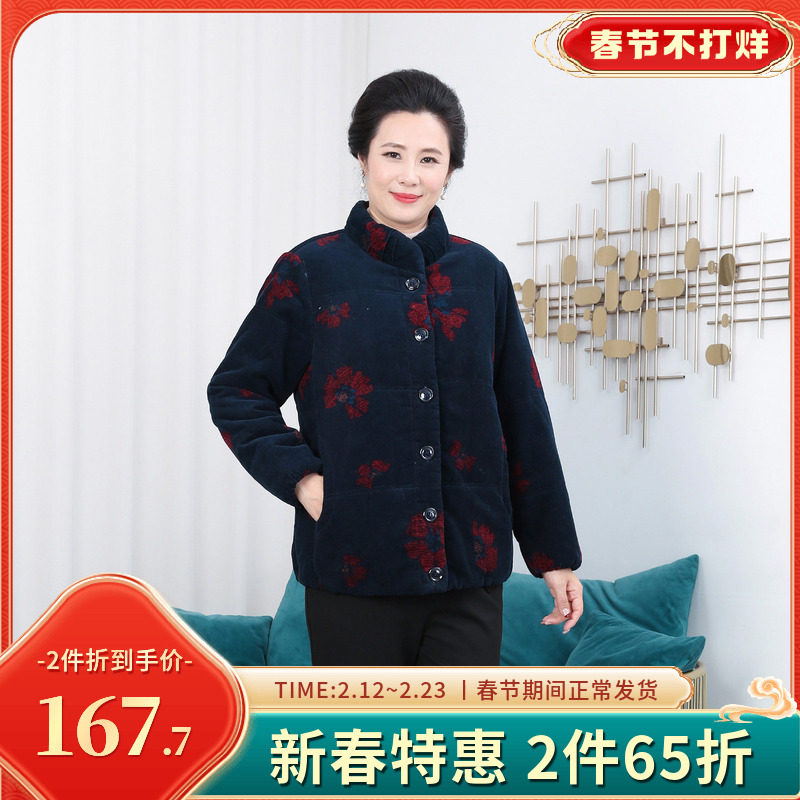 依佈妈妈装冬装新款棉服外套中老年女士全棉保暖上衣加厚大码棉袄