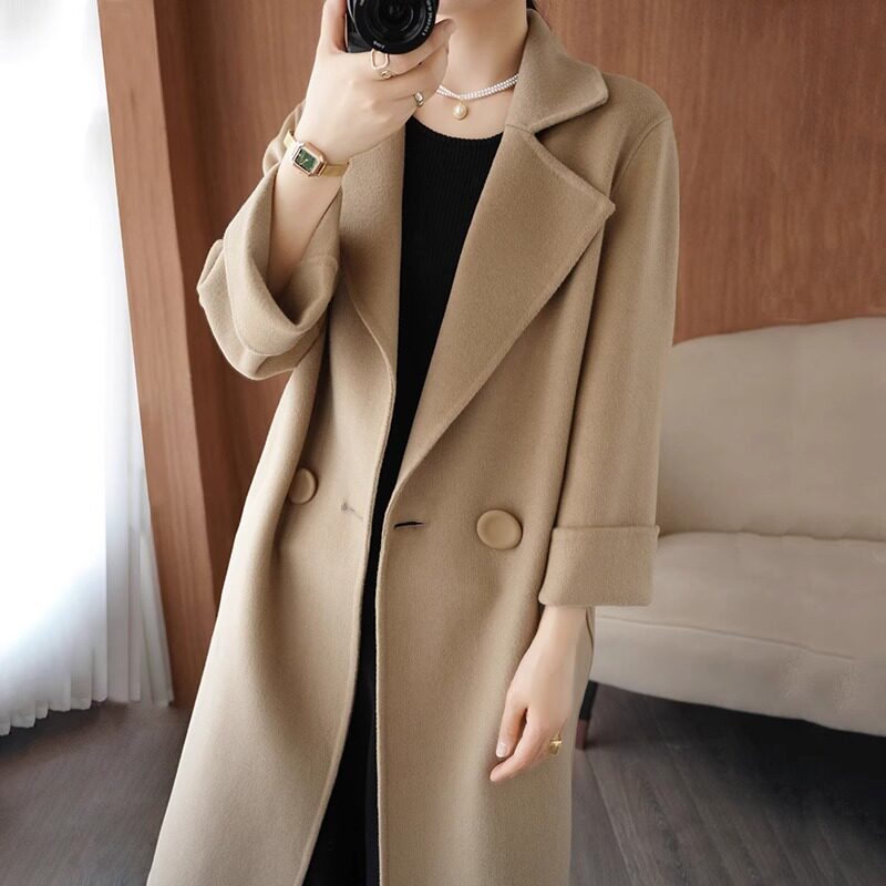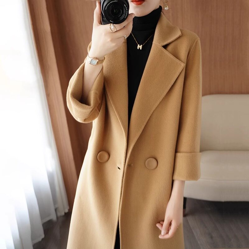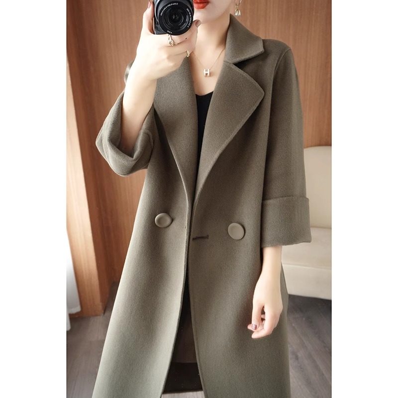时尚朗姿秋冬新款红色双面羊绒大衣女小个子气质中长款羊毛呢外套