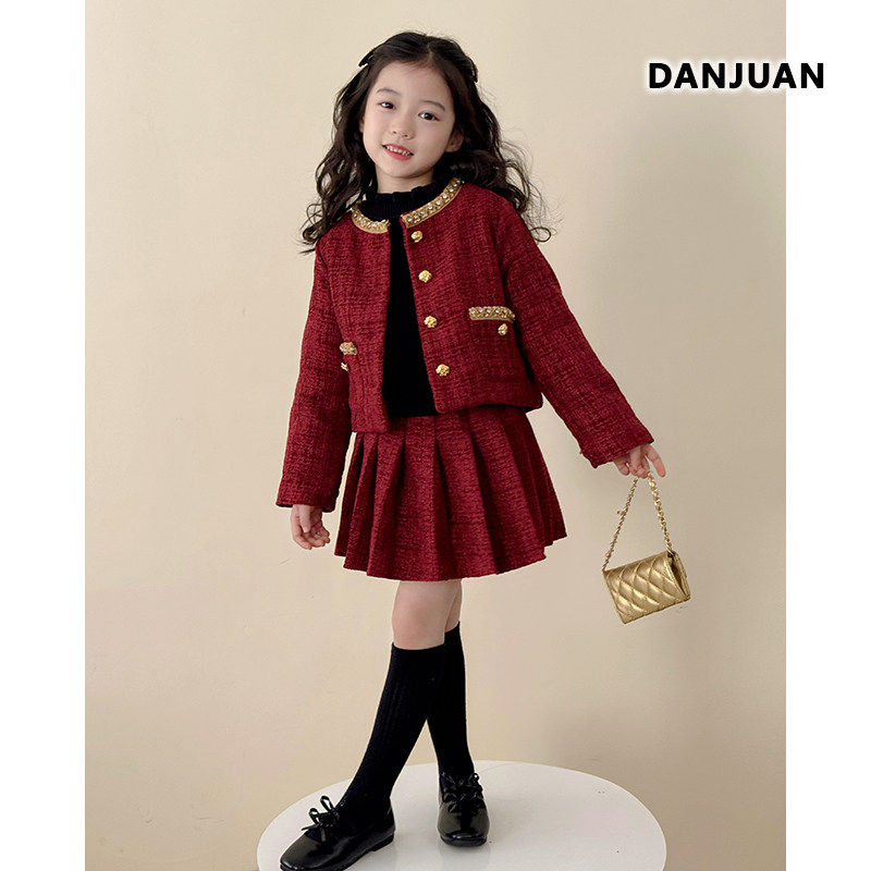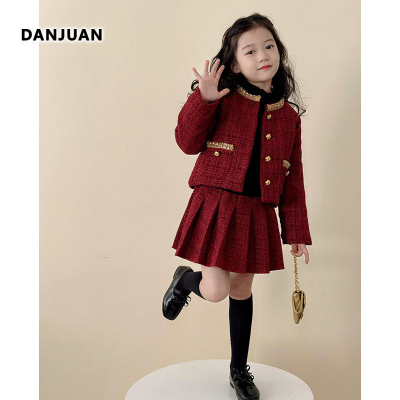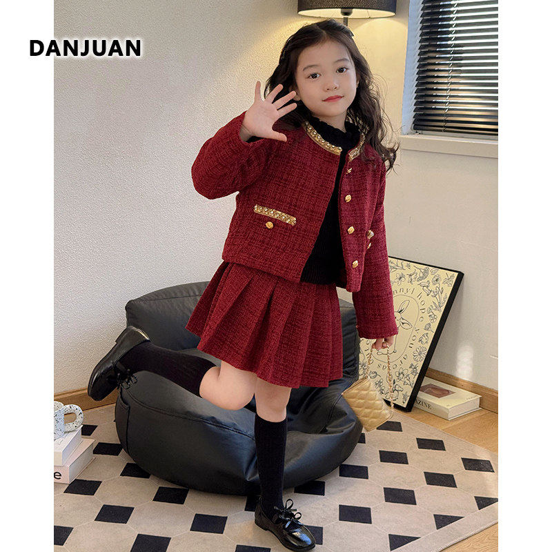 韩国女童套装裙冬季2025新款儿童洋气时髦中大童秋冬装百褶裙外套