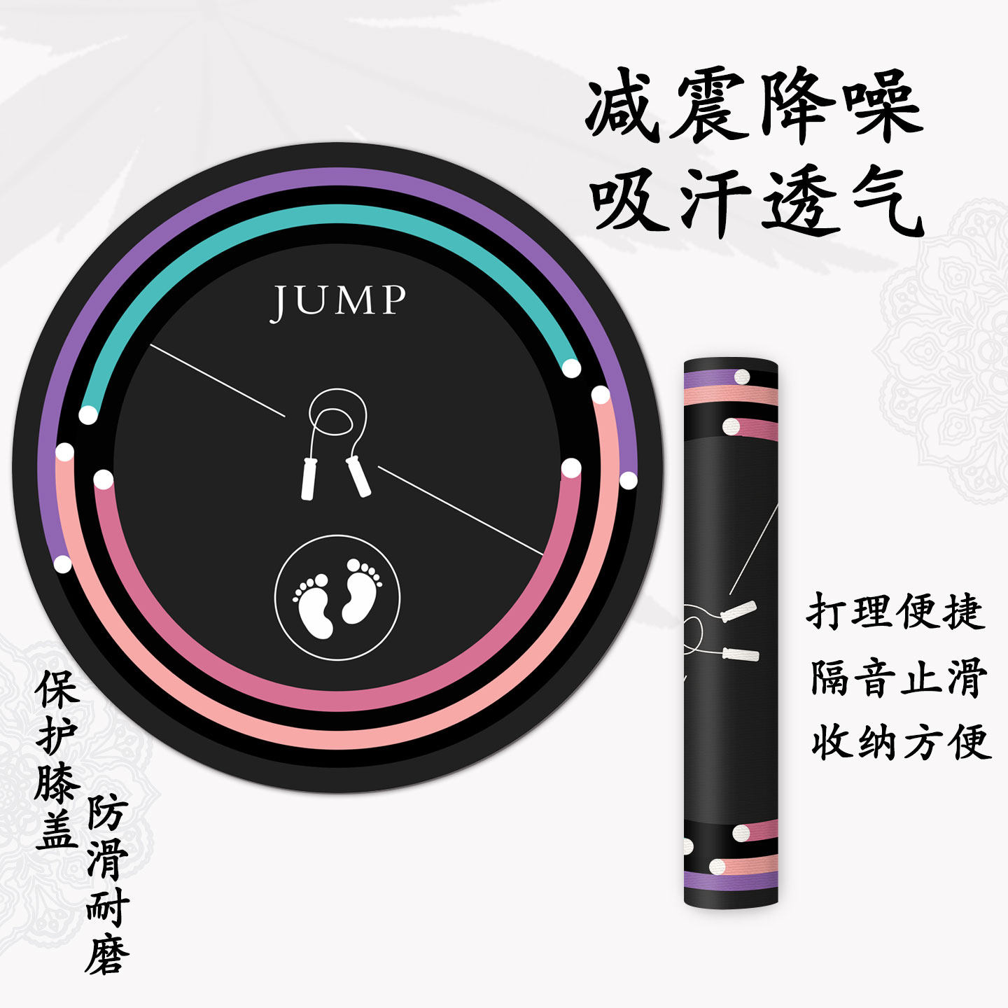 跳绳减震垫专业隔音室内防滑瑜伽运动健身静音家用地垫圆形地毯