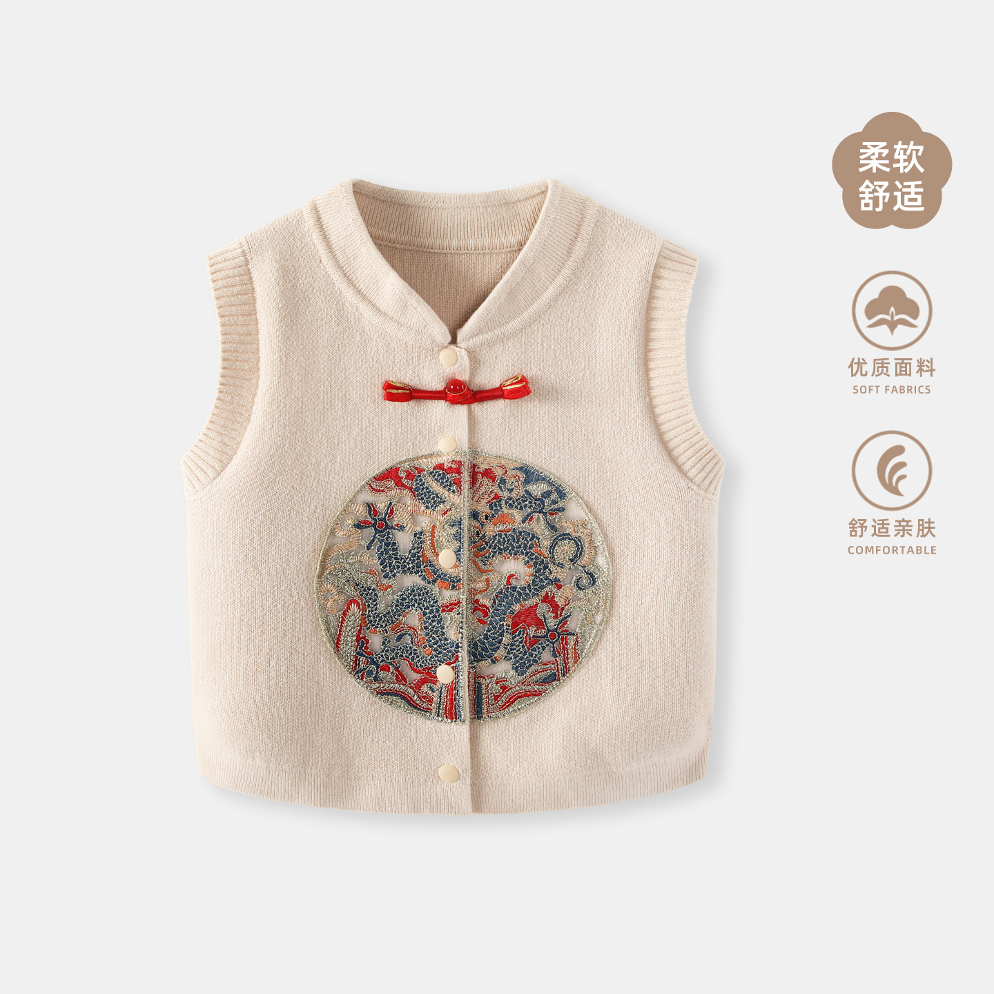波步男宝宝马甲冬季女童春装中国风红色背心马夹男童新年拜年服