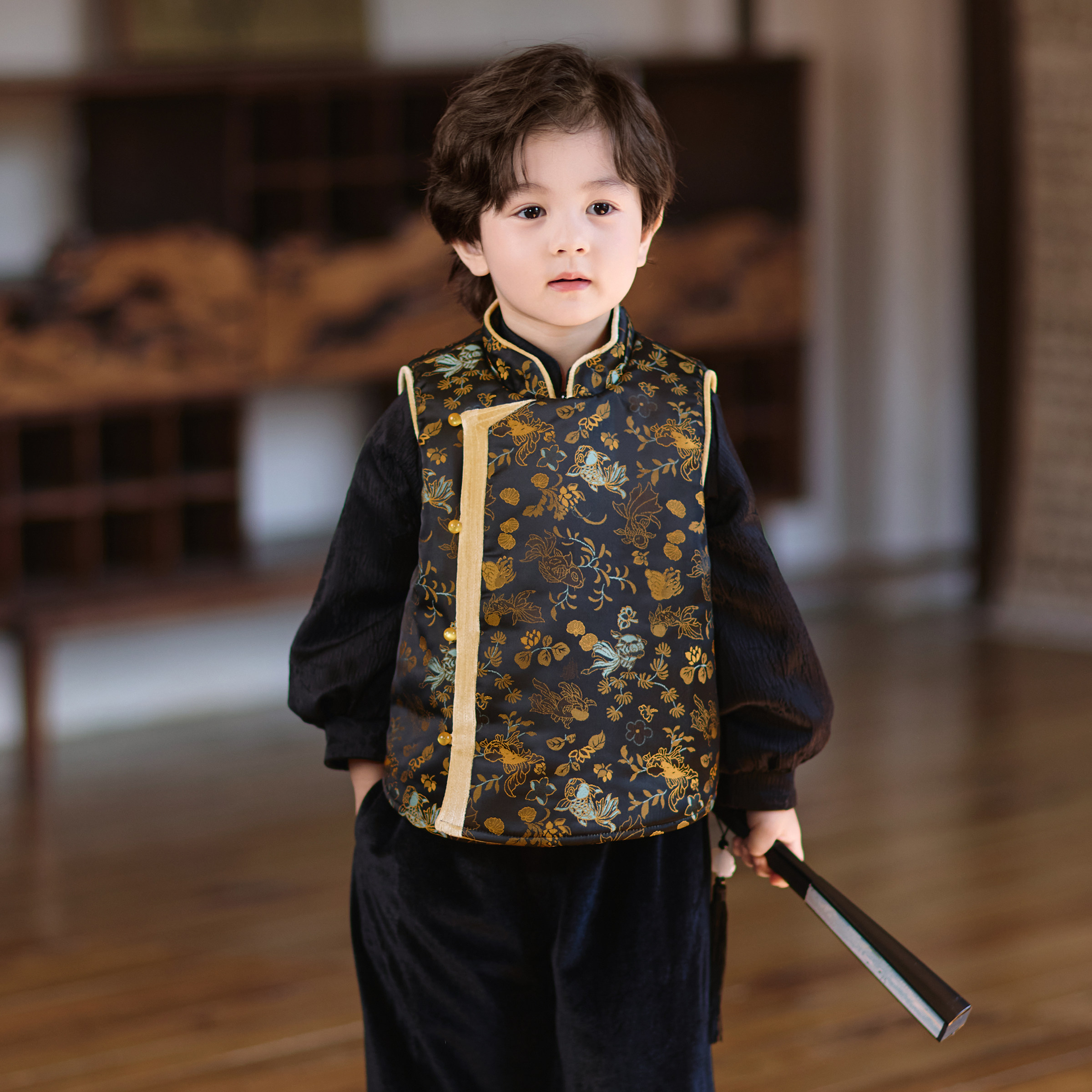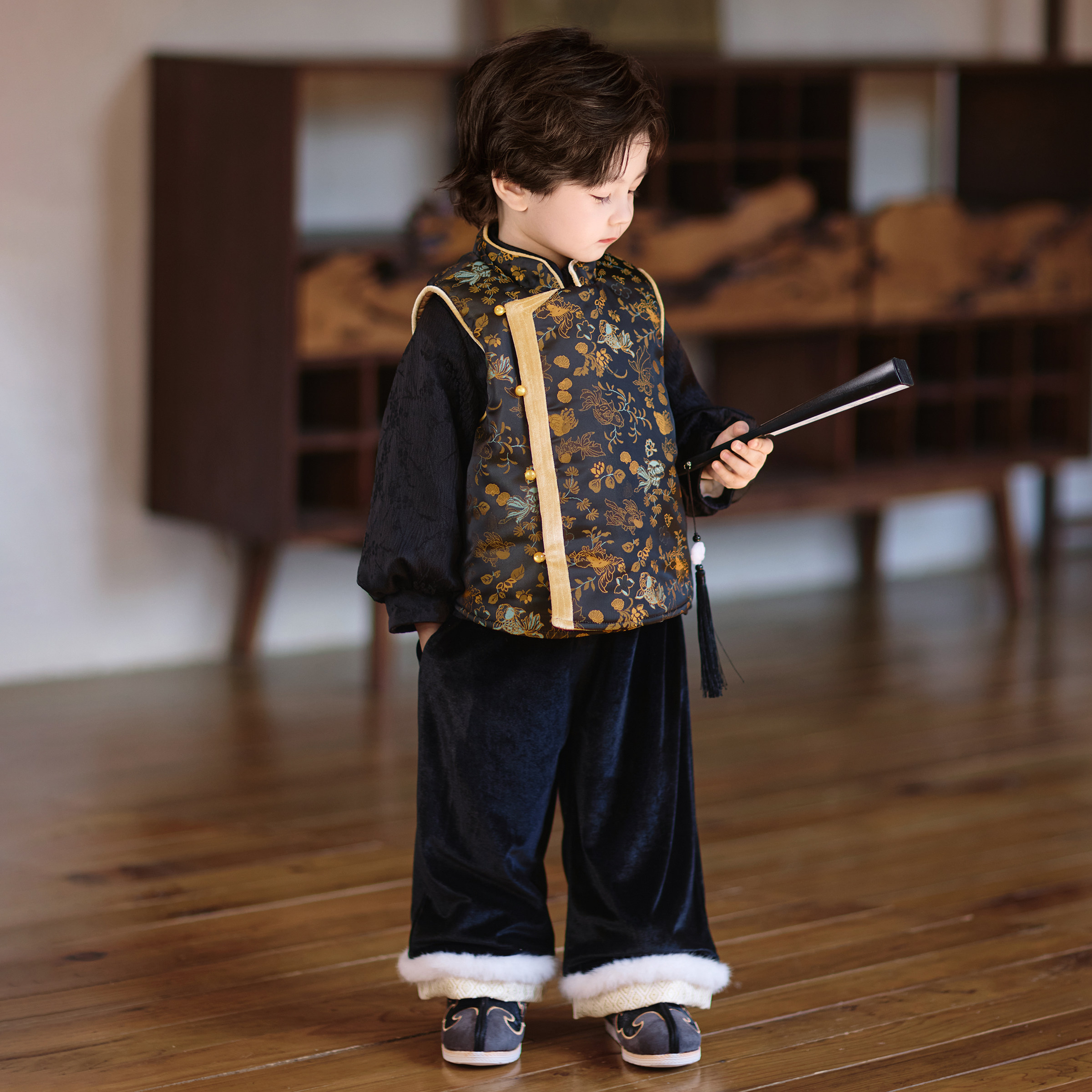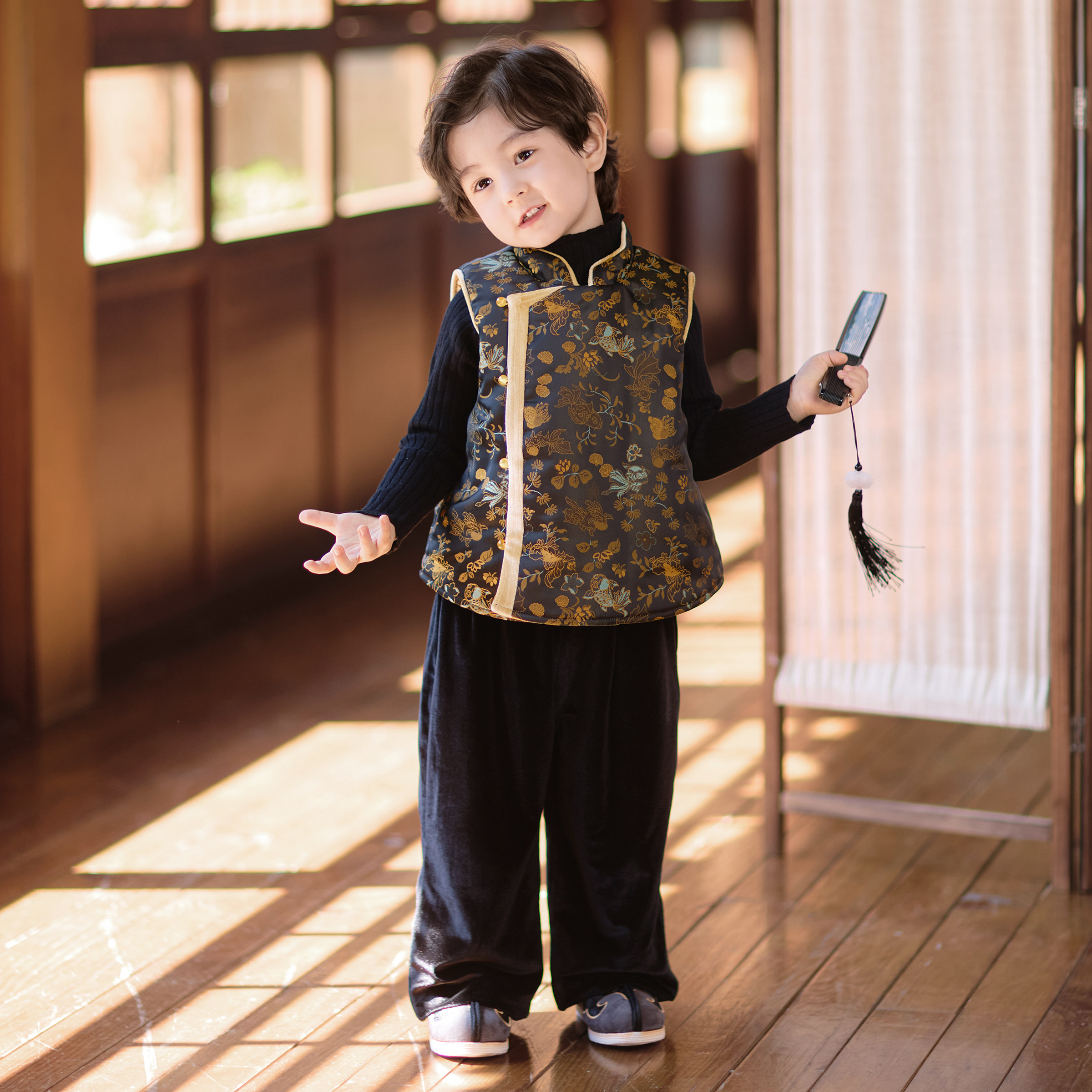 男童马甲秋冬款新中式国风套装儿童中国风加厚拜年服新年唐装容川