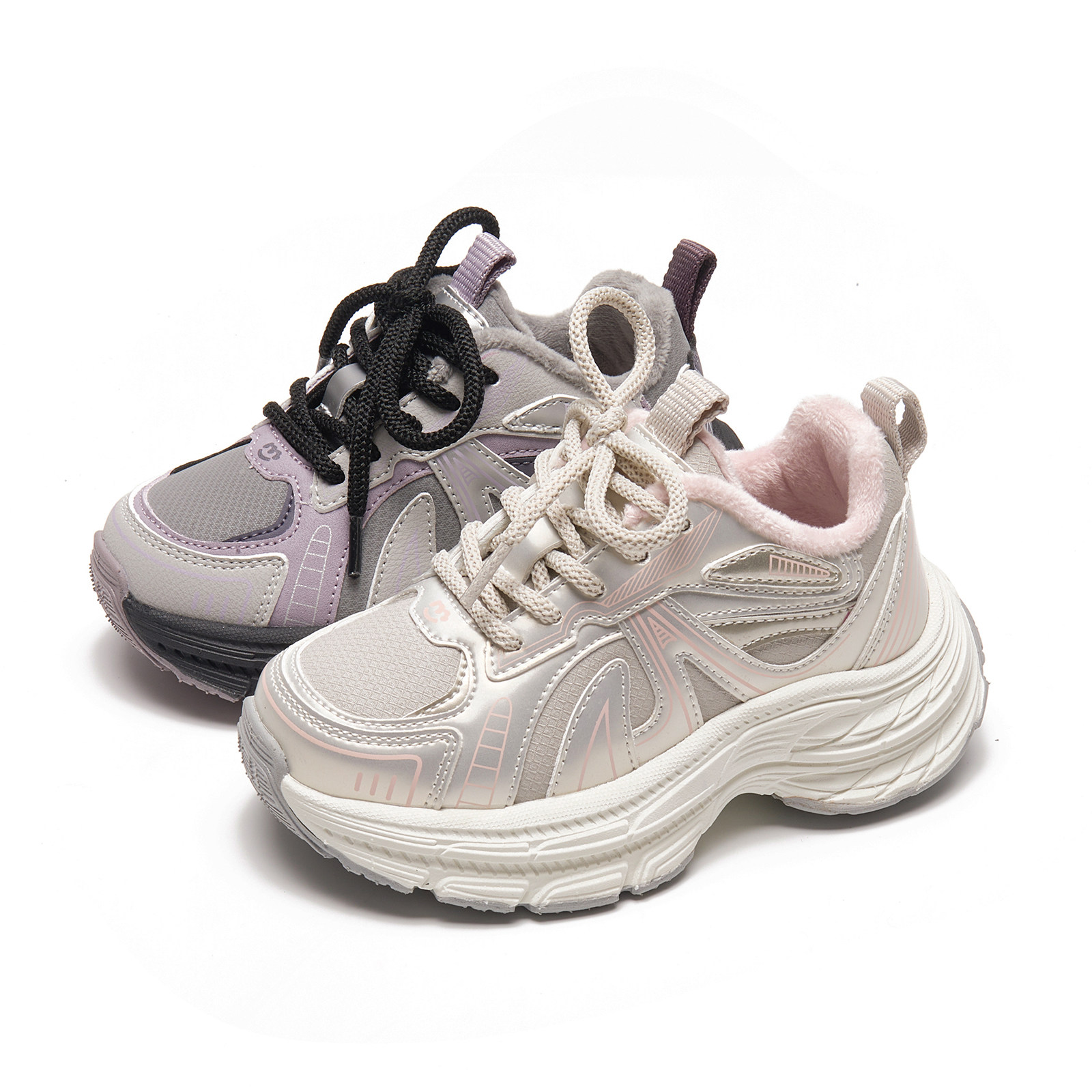 小米步女童运动鞋2025冬季新款加绒软底休闲鞋儿童防滑跑步鞋男童