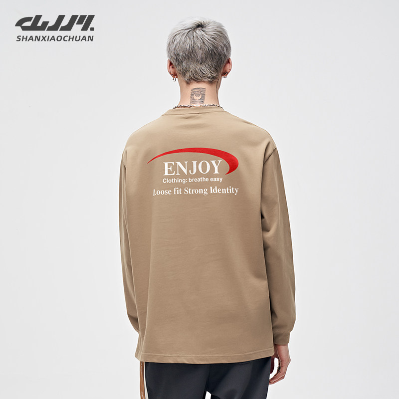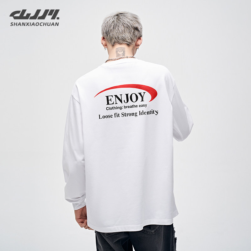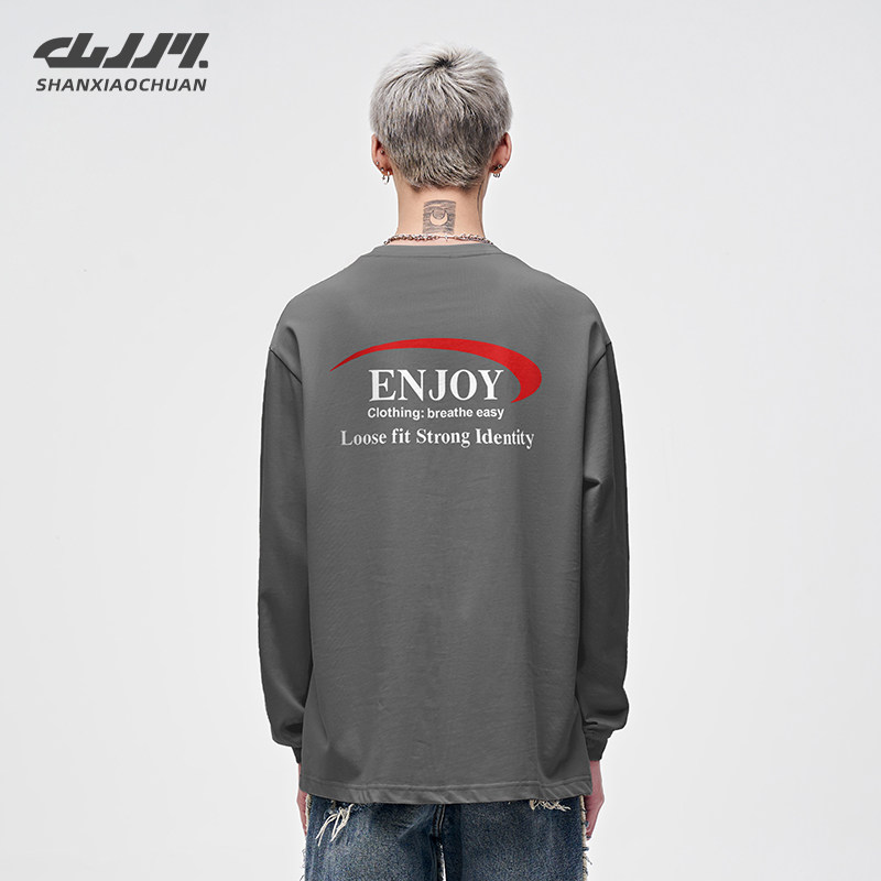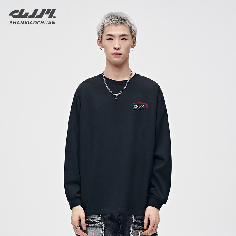 山小川圆领长袖t恤男秋季新款纯棉宽松打底衫大学生潮牌内搭上衣