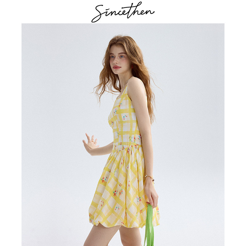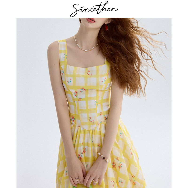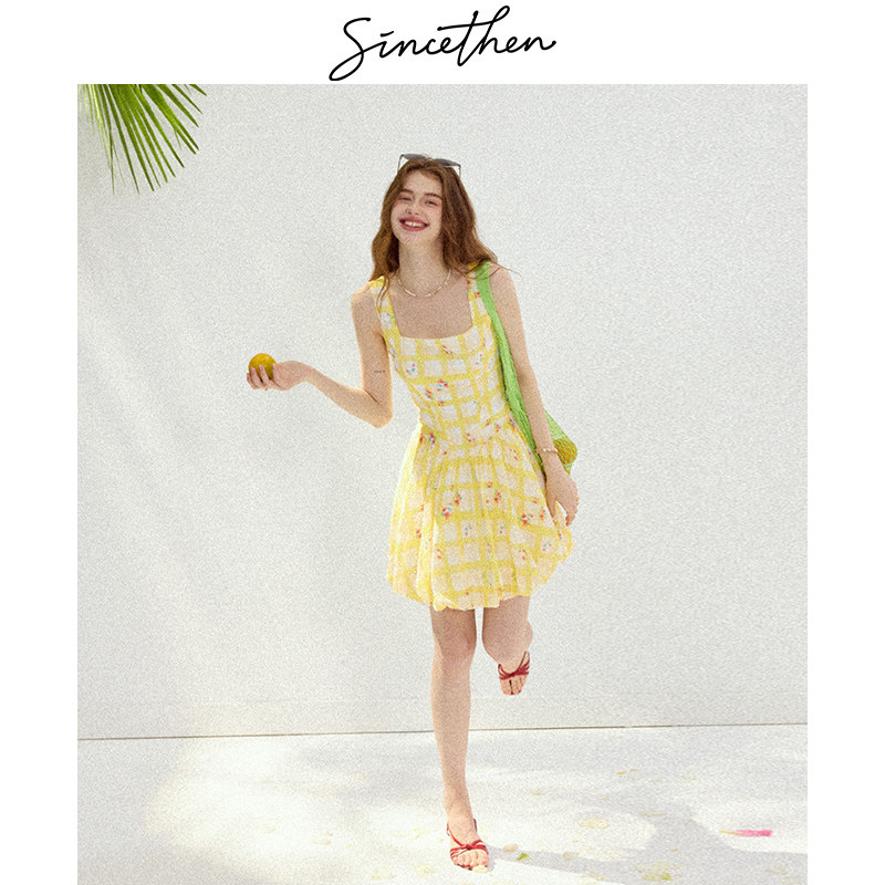 sincethen黄色连衣裙法式短款吊带裙度假穿搭短裙小个子裙子女夏