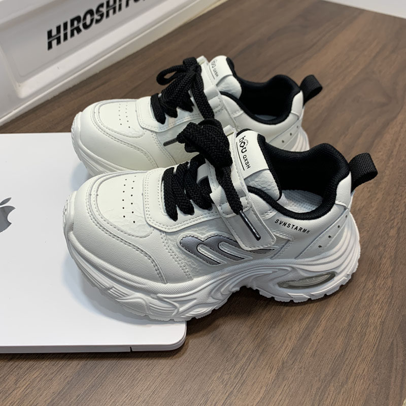 儿童气垫减震运动鞋男女童皮面轻便老爹鞋2026春季新款中大童跑鞋