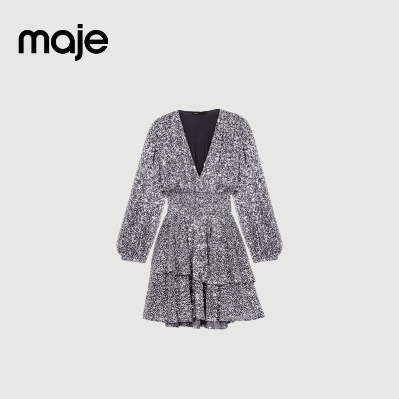 311线报网描述:性感V领长袖款式 时尚银色亮片装饰