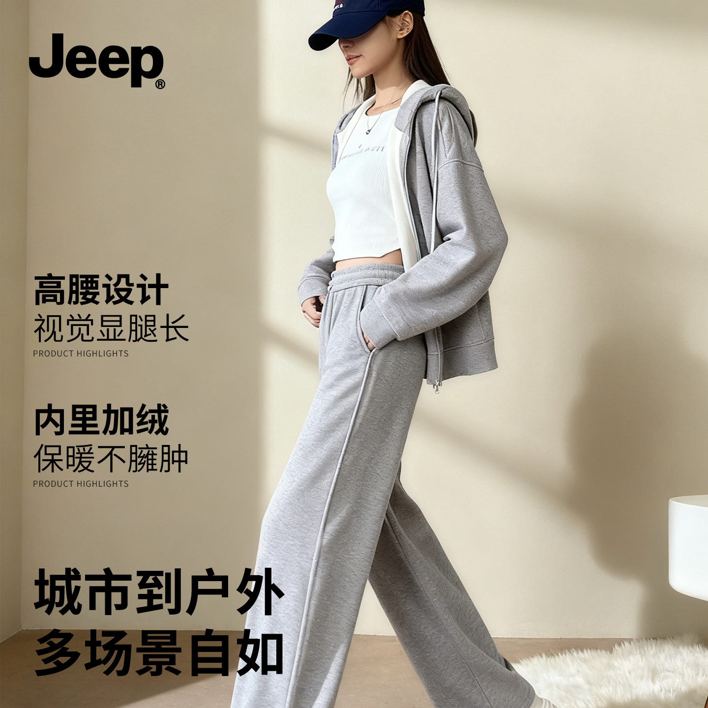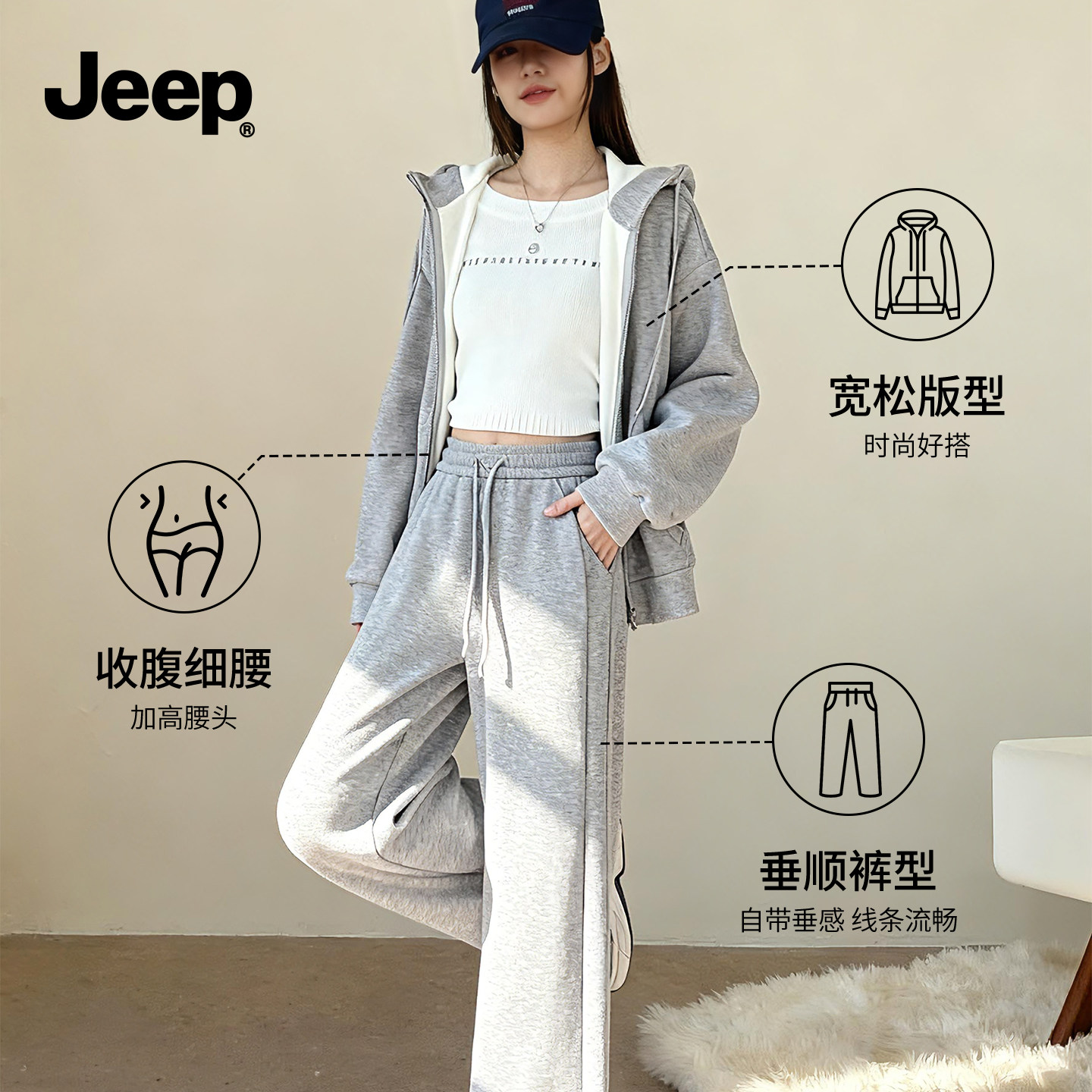 JEEP吉普灰色运动套装女2026新款慕斯绒阔腿裤超好看冬装一整套Y
