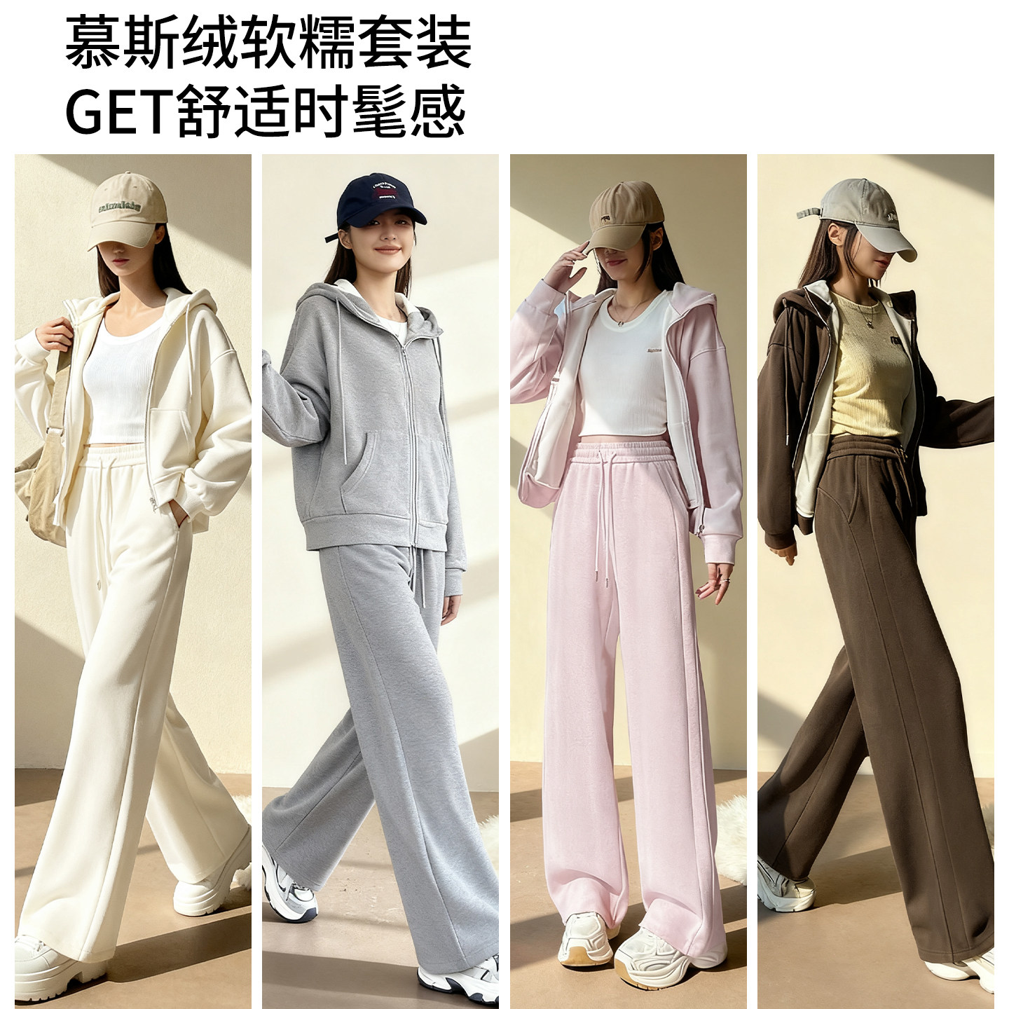 311线报网描述:加绒加厚 宽松显瘦 垂感直筒阔腿裤运动套装