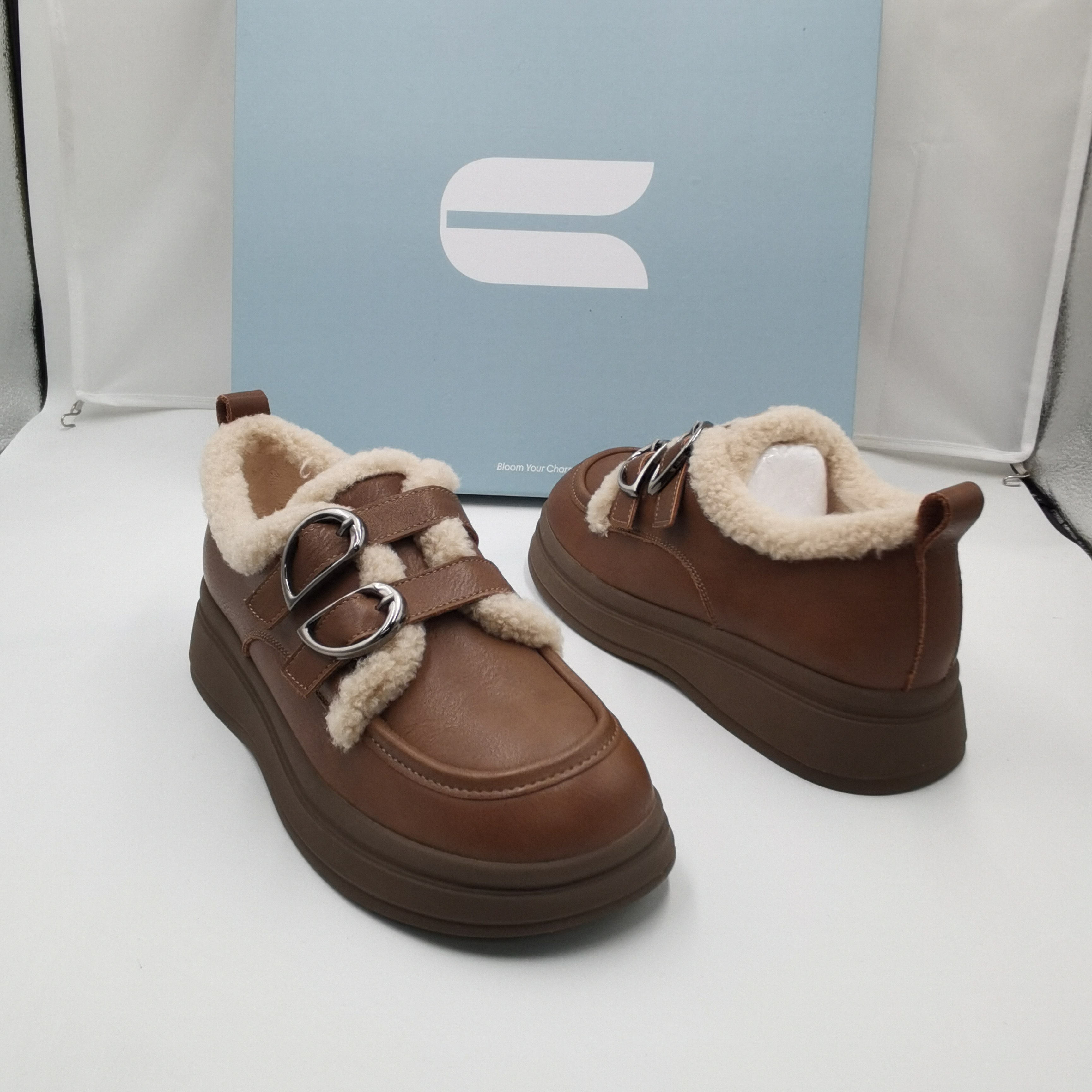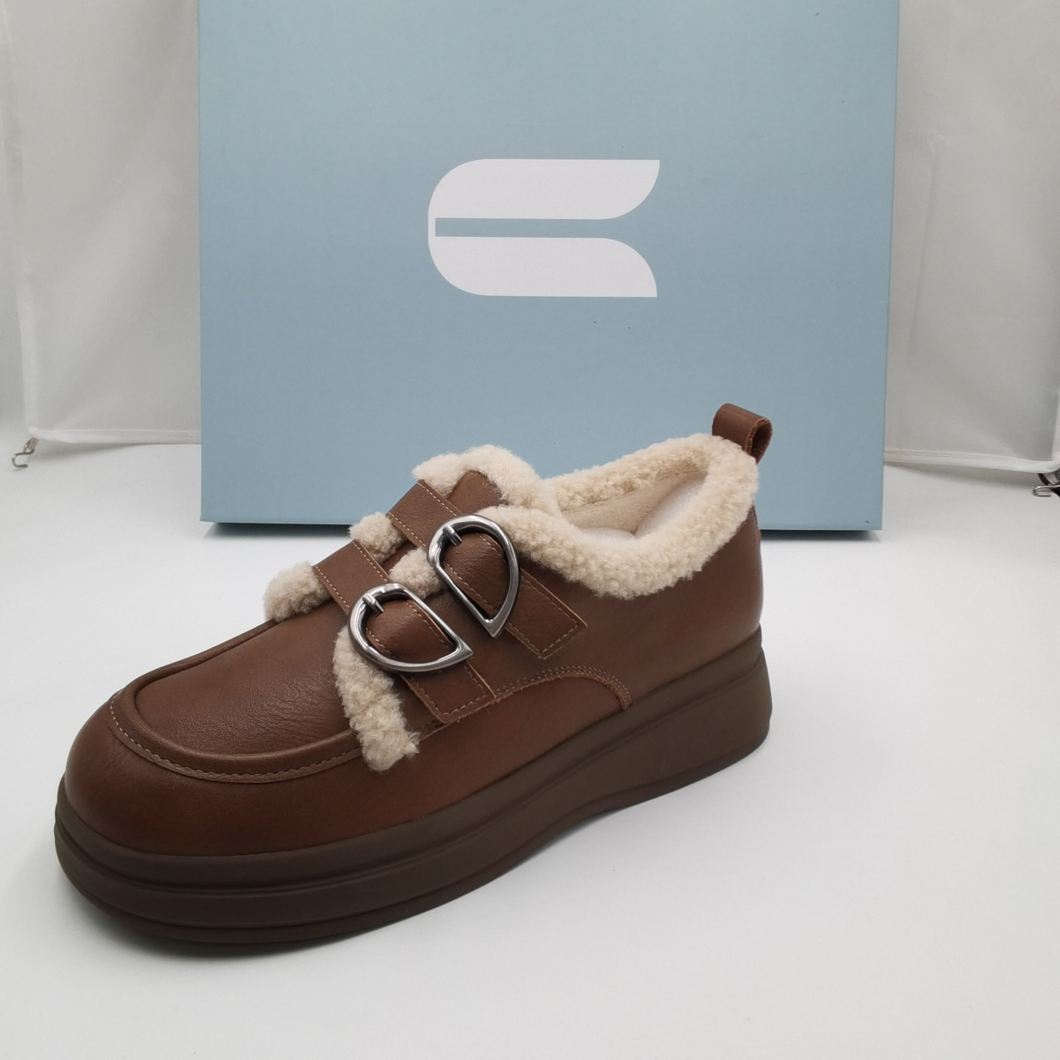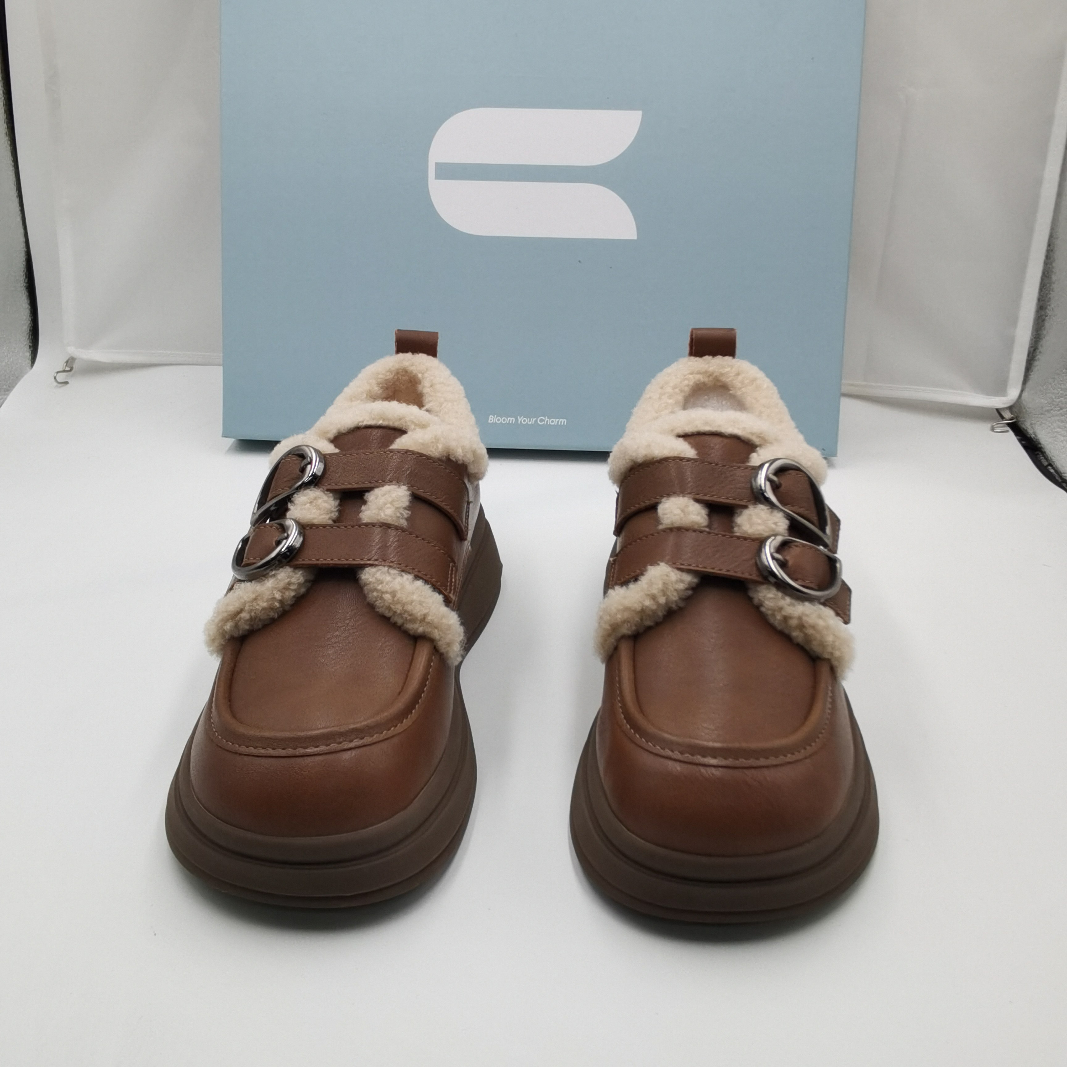 品牌正品商场同款新款女鞋加绒乐福鞋女加厚棉鞋毛毛鞋892驼色36