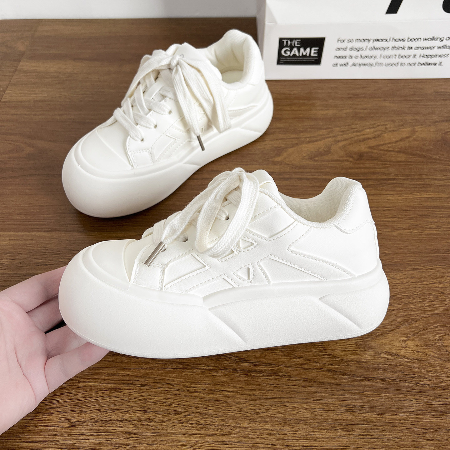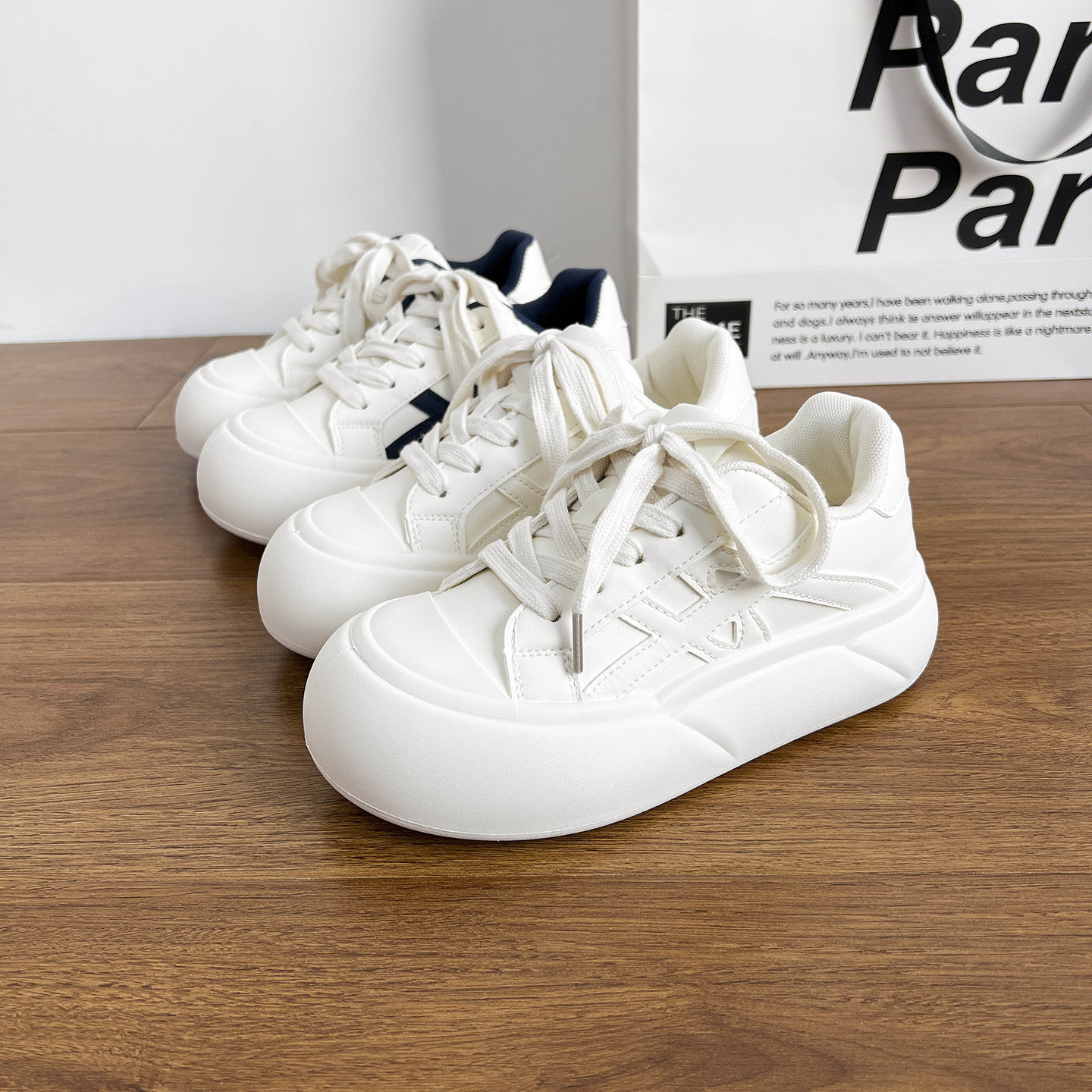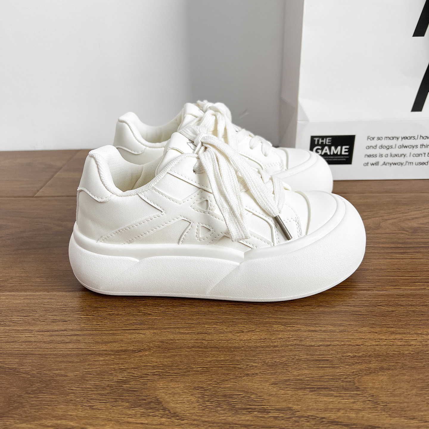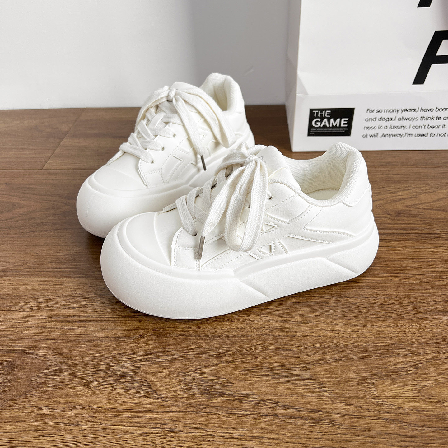 卷毛高白色厚底板鞋女2026新款春增高小白鞋潮百搭配阔腿裤面包鞋