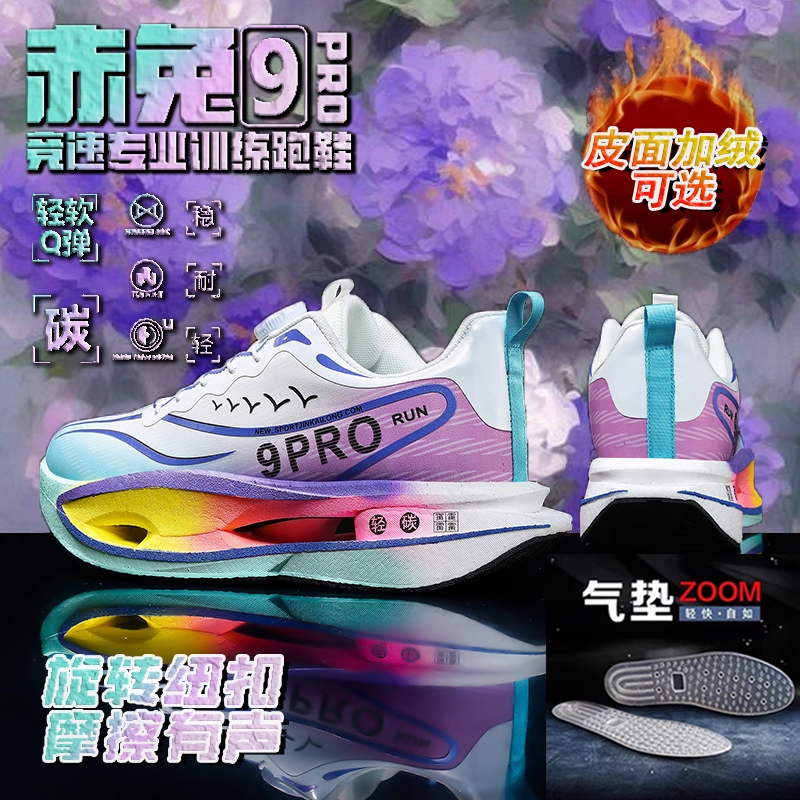 赤兔9pro碳板儿童跑步鞋皮面加绒二棉鞋超轻男童运动跑鞋气垫双网
