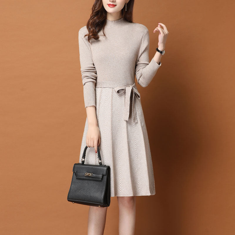 女士毛衣中长款打底衫秋冬装2022年新款女装洋气过膝针织连衣裙潮