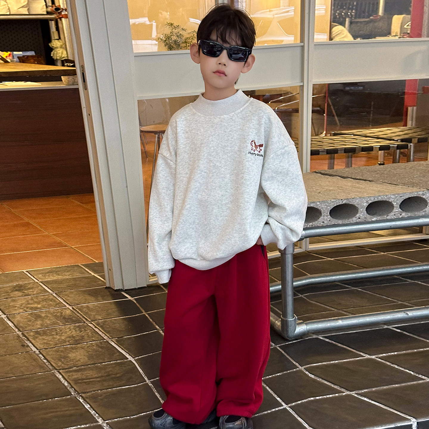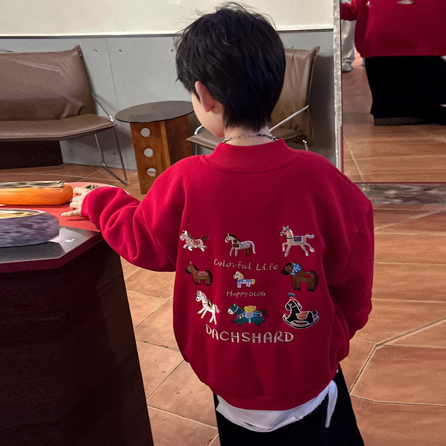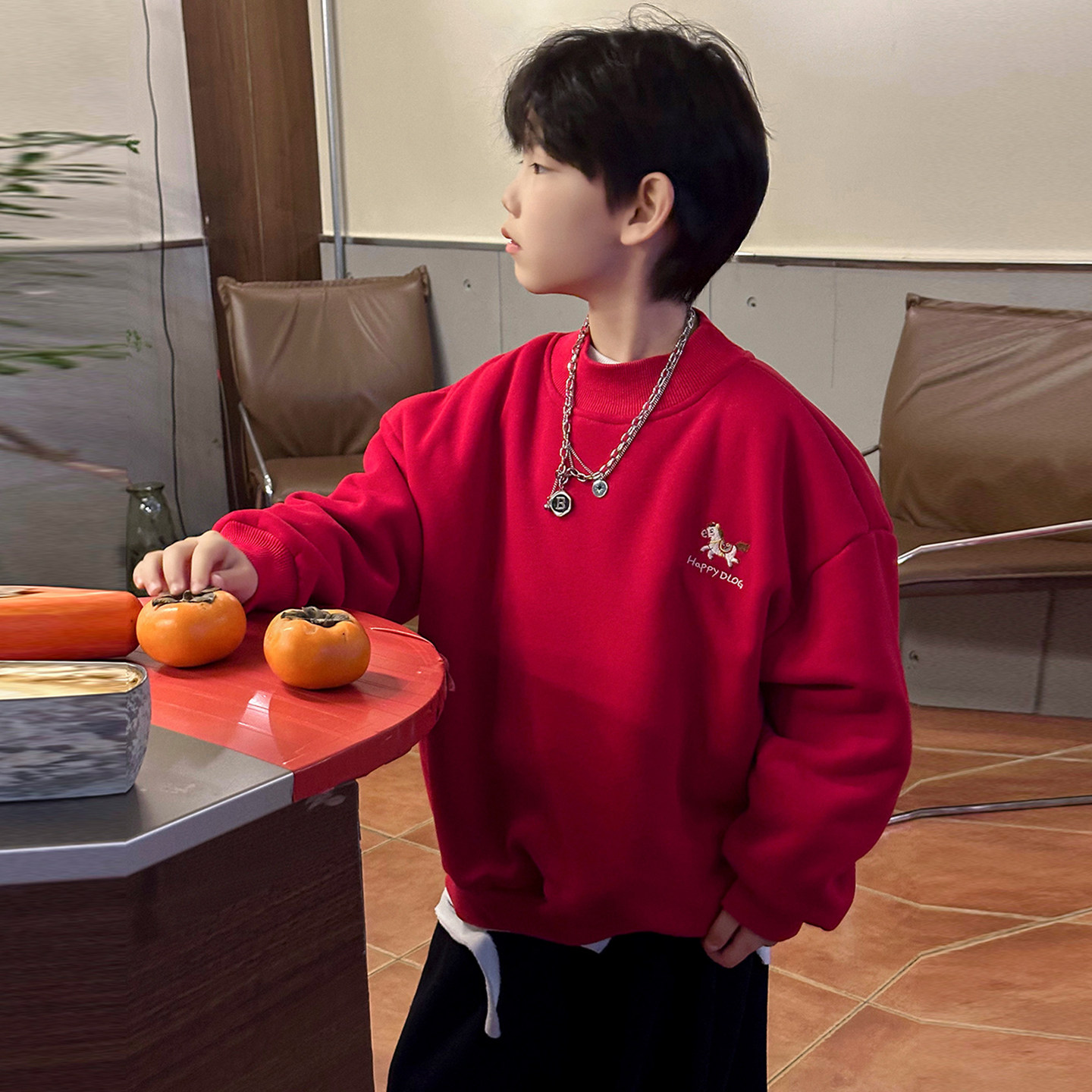 男童加绒加厚卫衣儿童2025新款洋气刺绣拜年服冬装男孩中大童上衣
