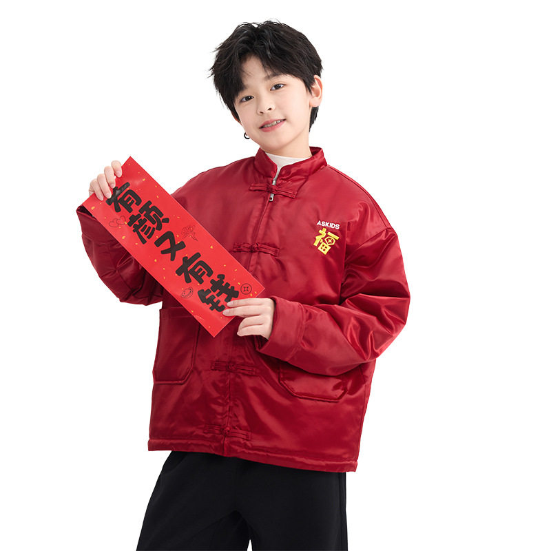 男童冬装马年红色中国风夹棉唐装汉服2025新款儿童新年拜年服棉服