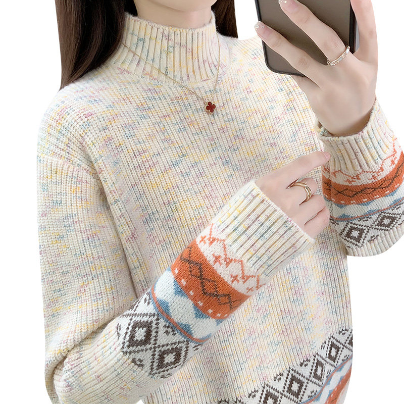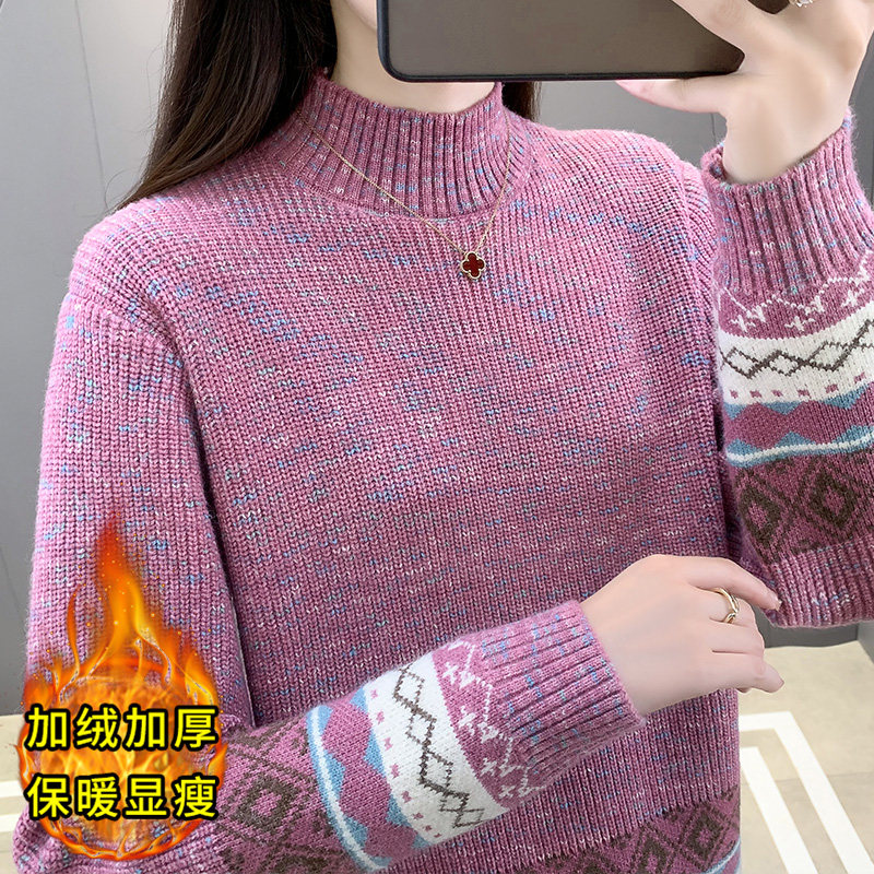 毛衣女款2025新款冬季针织衫加绒加厚半高领打底衫内搭上衣女秋冬