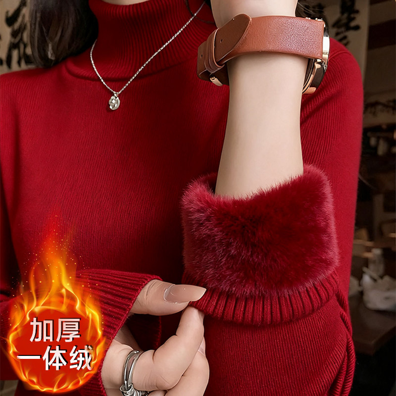 NOW真维斯加绒加厚半高领毛衣女款2026冬季新款保暖内搭毛衫女