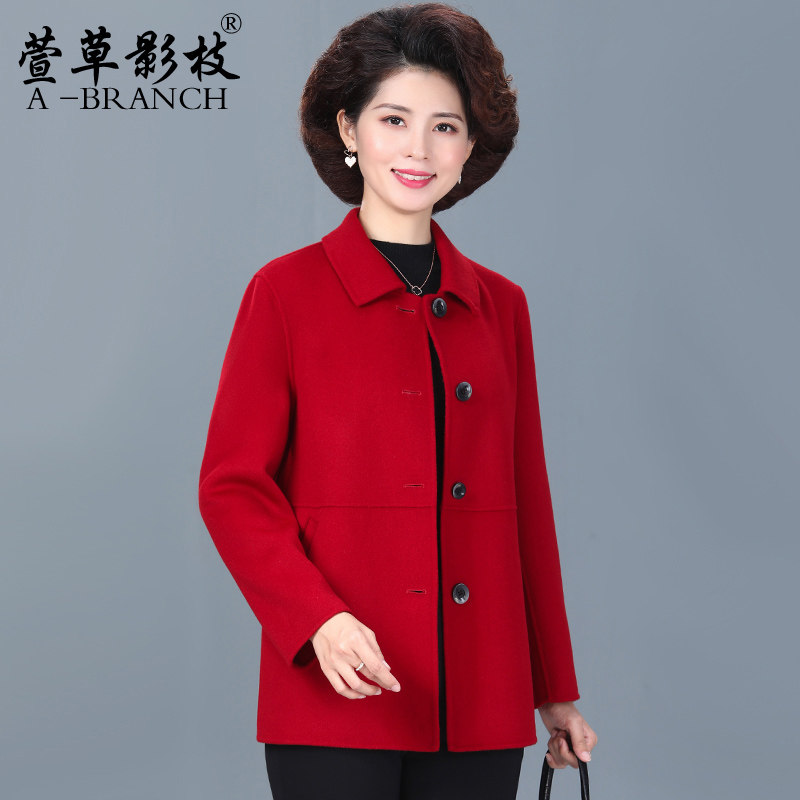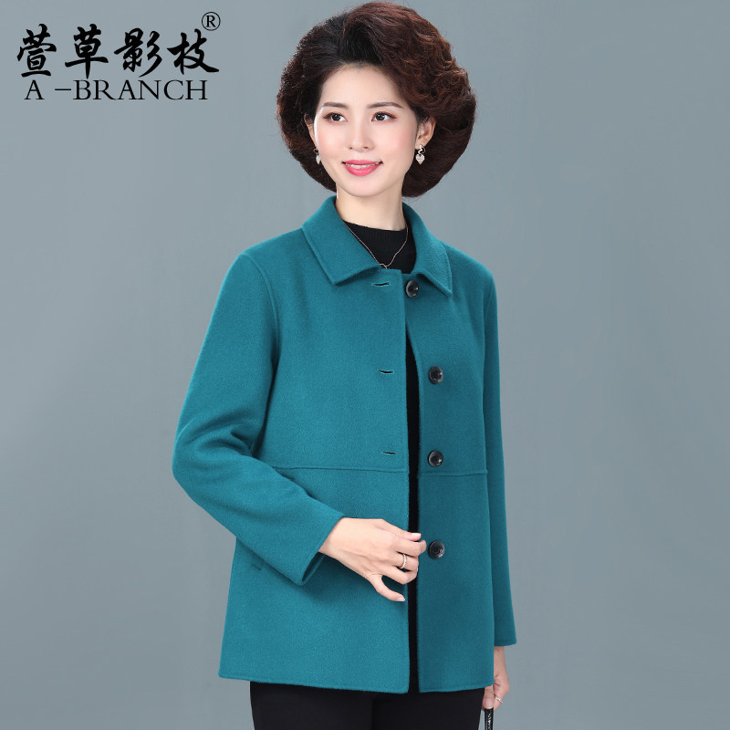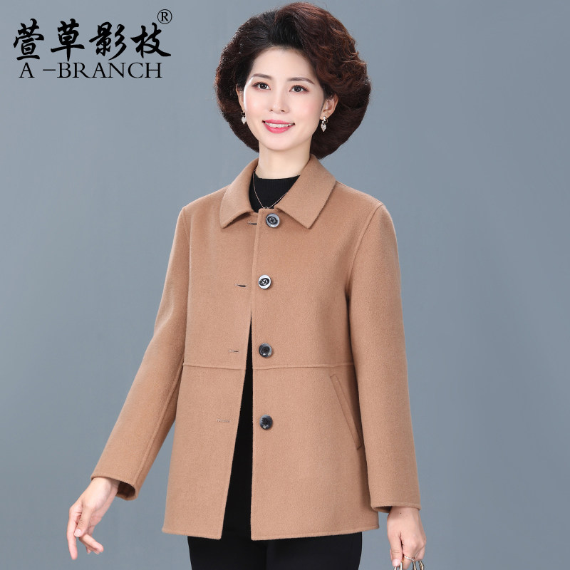 小个子妈妈双面呢子大衣女短款中老年人气质宽松毛呢奶奶秋冬外套