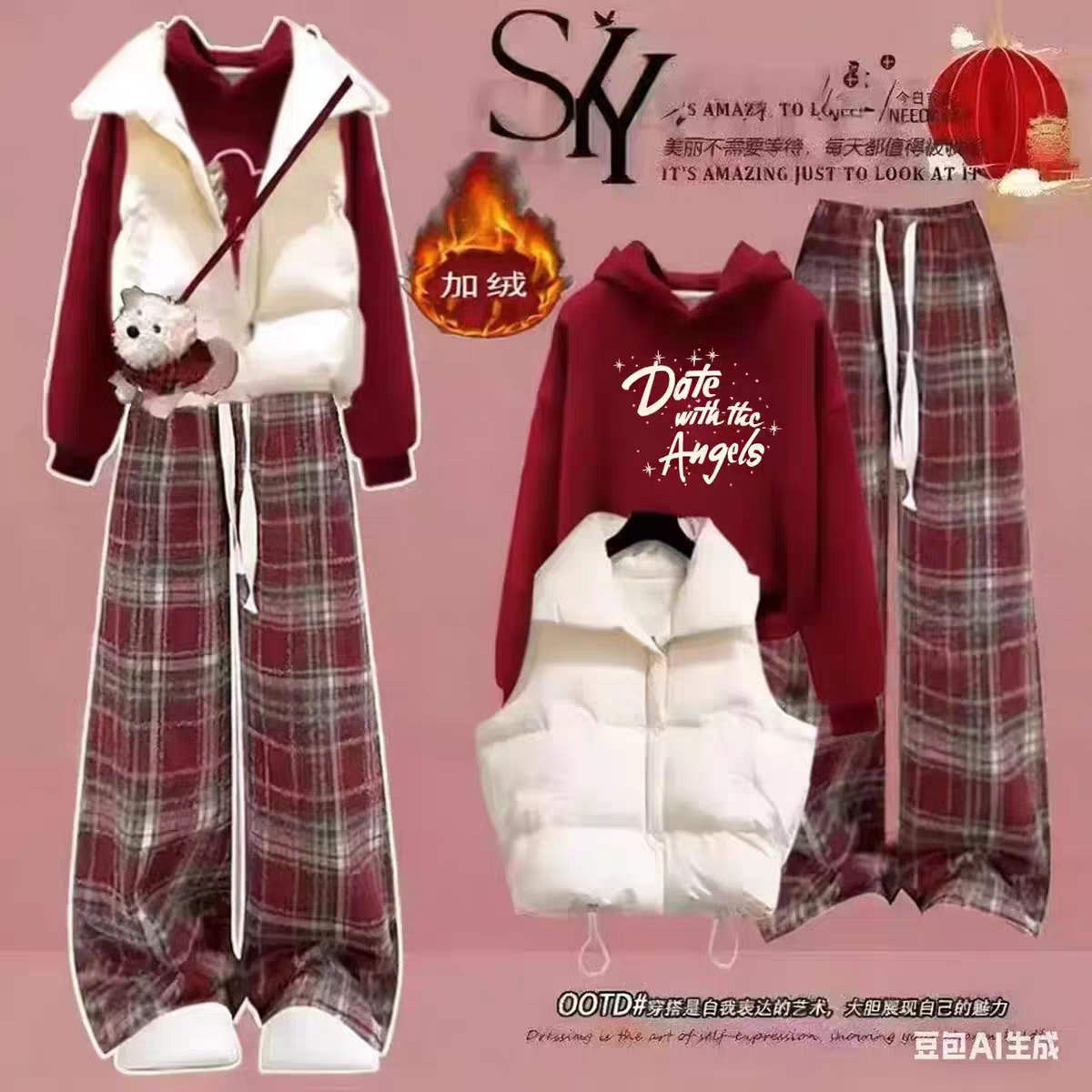 冬季大童女装12-15岁加绒卫衣三件套13初中学生14洋气过年套装16