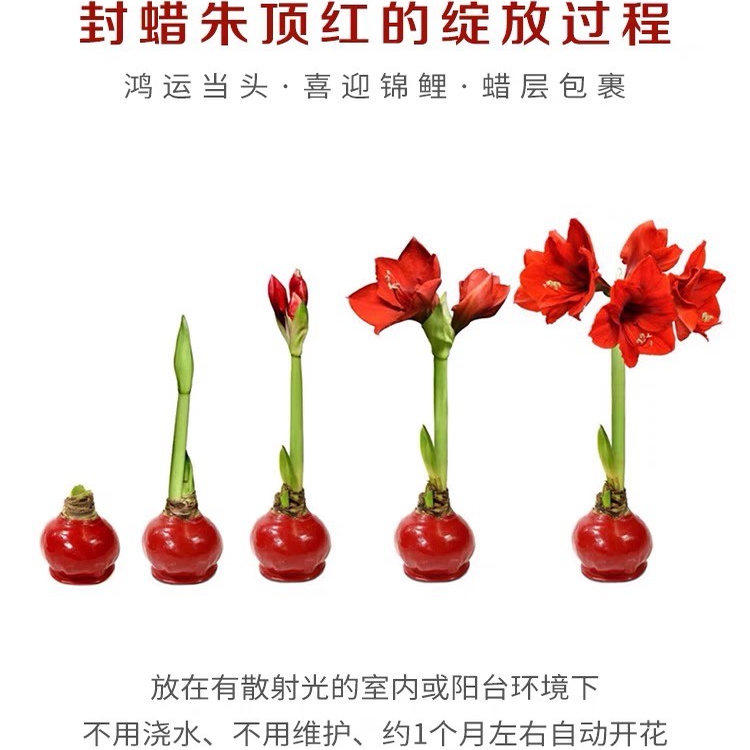 蜡封朱顶红包对版蜡球进口年宵花封蜡球礼盒福运卡片加福室内装饰