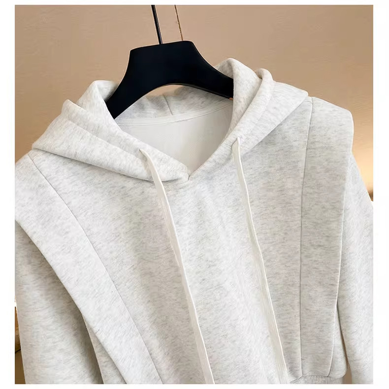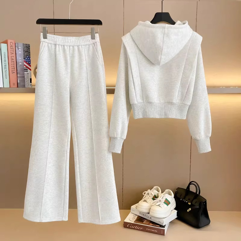 小个子韩版休闲运动套装女2026秋冬洋气减龄加绒卫衣阔腿裤两件套