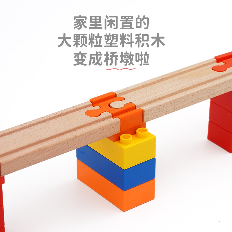 木质轨道大颗粒积木通用连接件转接配件儿童拼装火车组合拼搭玩具